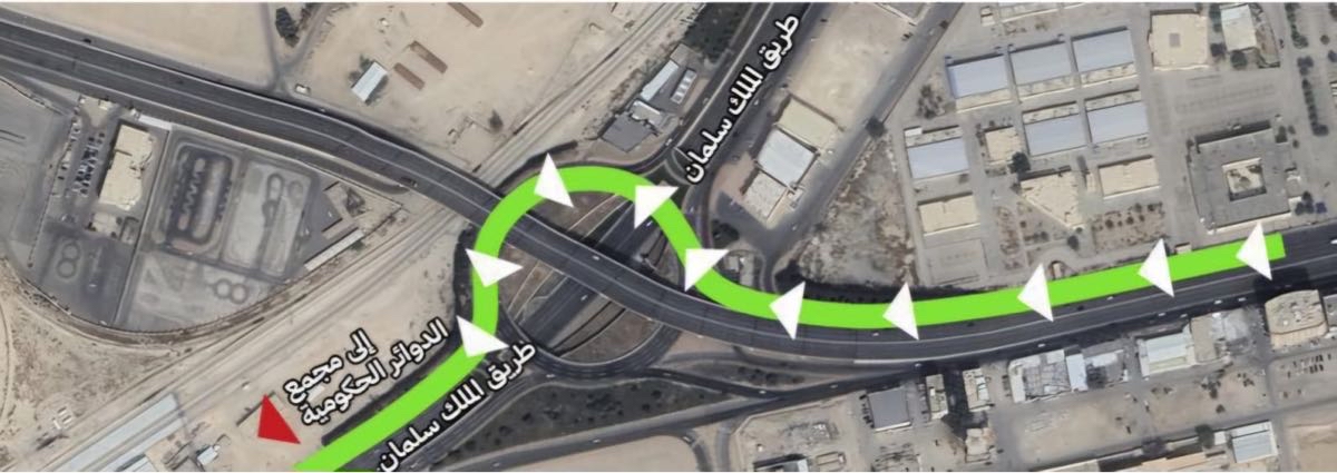 ولتسهيل الحركة المرورية، حددت الأمانة مسارًا بديلاً للسائقين الراغبين في الوصول إلى مجمع الدوائر الحكومية، حيث يمكنهم سلوك شارع الخدمة المجاور للمعهد المهني الصناعي، ثم طريق الملك سلمان بمحاذاة محطة قطار ”سار“، وصولًا إلى الدوار العلوي لميدان عين نجم والاتجاه يمينًا.