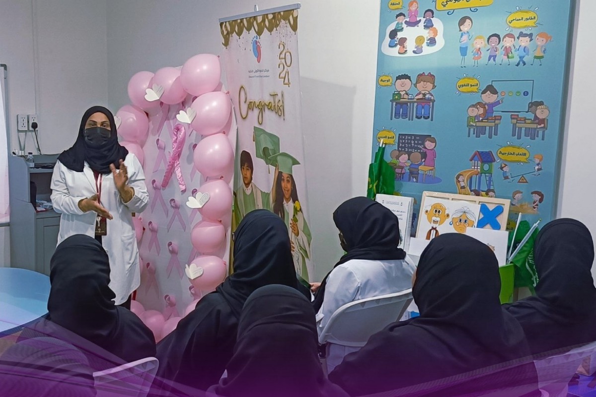 وفي سياق متصل، امتدت الأنشطة التوعوية لتشمل صحة المرأة والطفل، إذ أقام قسم الرعاية النموذجية فعالية تثقيفية متخصصة في مركز ”الخطوة الأولى الذكية“ لضيافة الأطفال.