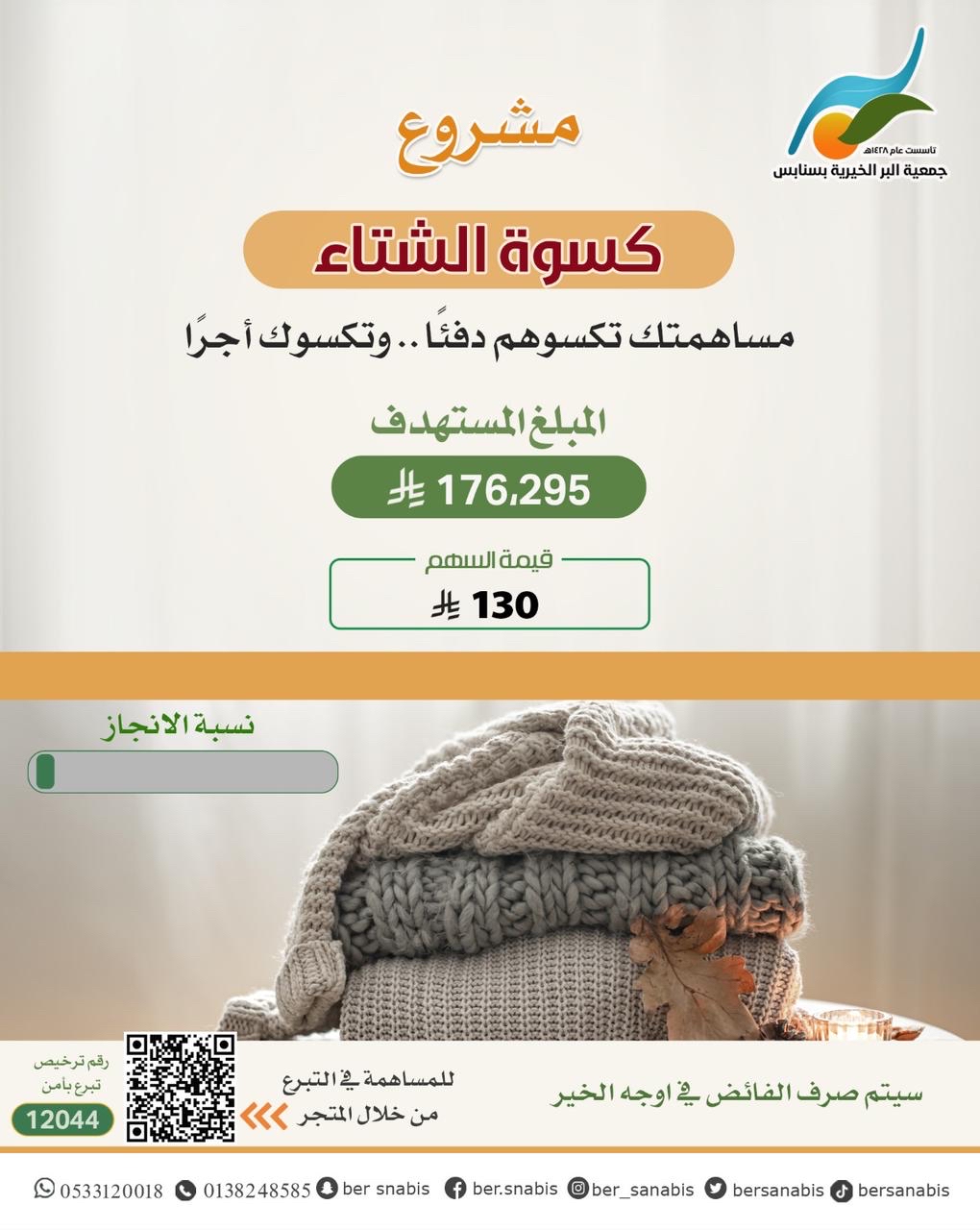 تبرعك بـ 130 ريالاً يؤمّن ”كسوة الشتاء“ لفرد محتاج في سنابس