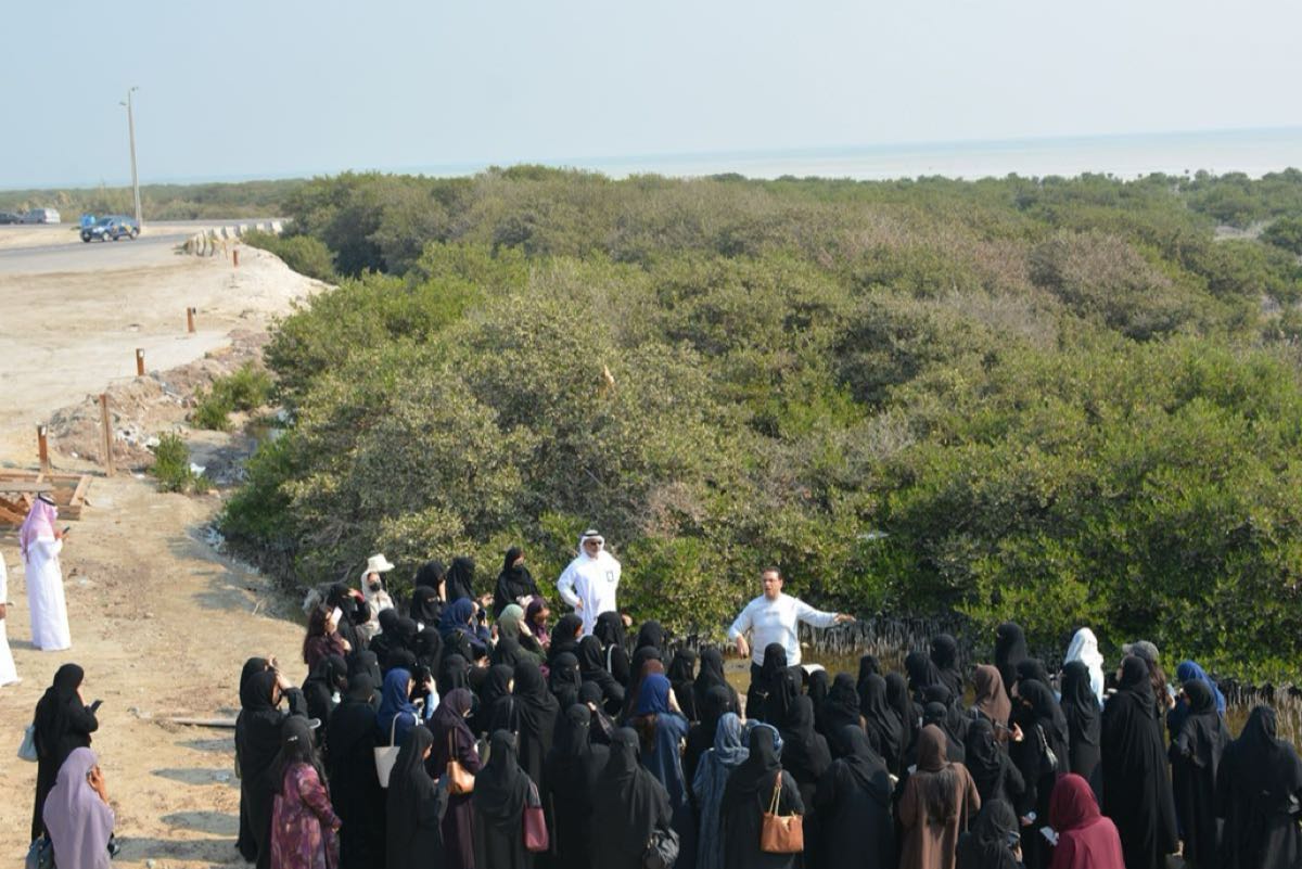 وخاضت الطالبات البالغ عددهن 130 طالبة جولة ميدانية تعريفية، تم خلالها تسليط الضوء على الأهمية البيئية الكبرى لأشجار المانجروف والدور الحيوي الذي تلعبه في التوازن البيئي الساحلي.