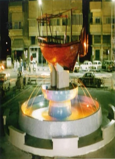 دوار السفينة بحي المدارس الذي كان يباع فيه بسطات الأحجار الكريمة «مصدر الصورة: من أرشيف المرحوم إبراهيم منصور البحارنه»