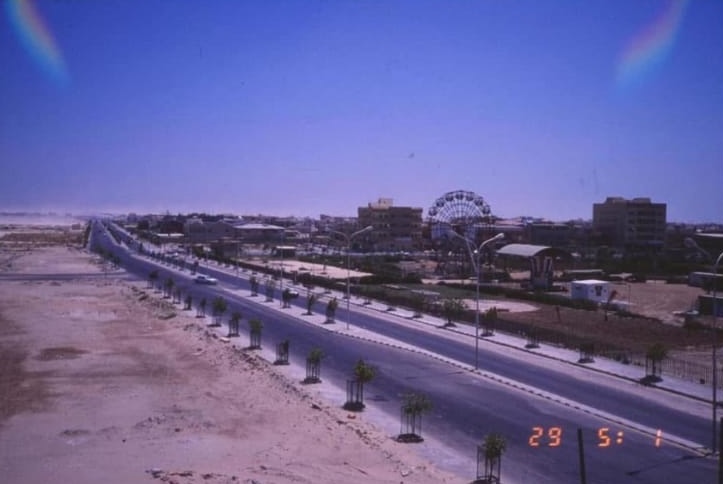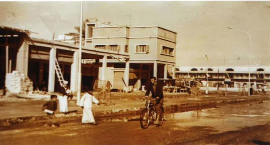 حي المدارس بشارع الملك عبد العزيز بجانب مكتبة الساحل بالقطيف «مصدر الصورة: من أرشيف المرحوم إبراهيم منصور البحارنه»
