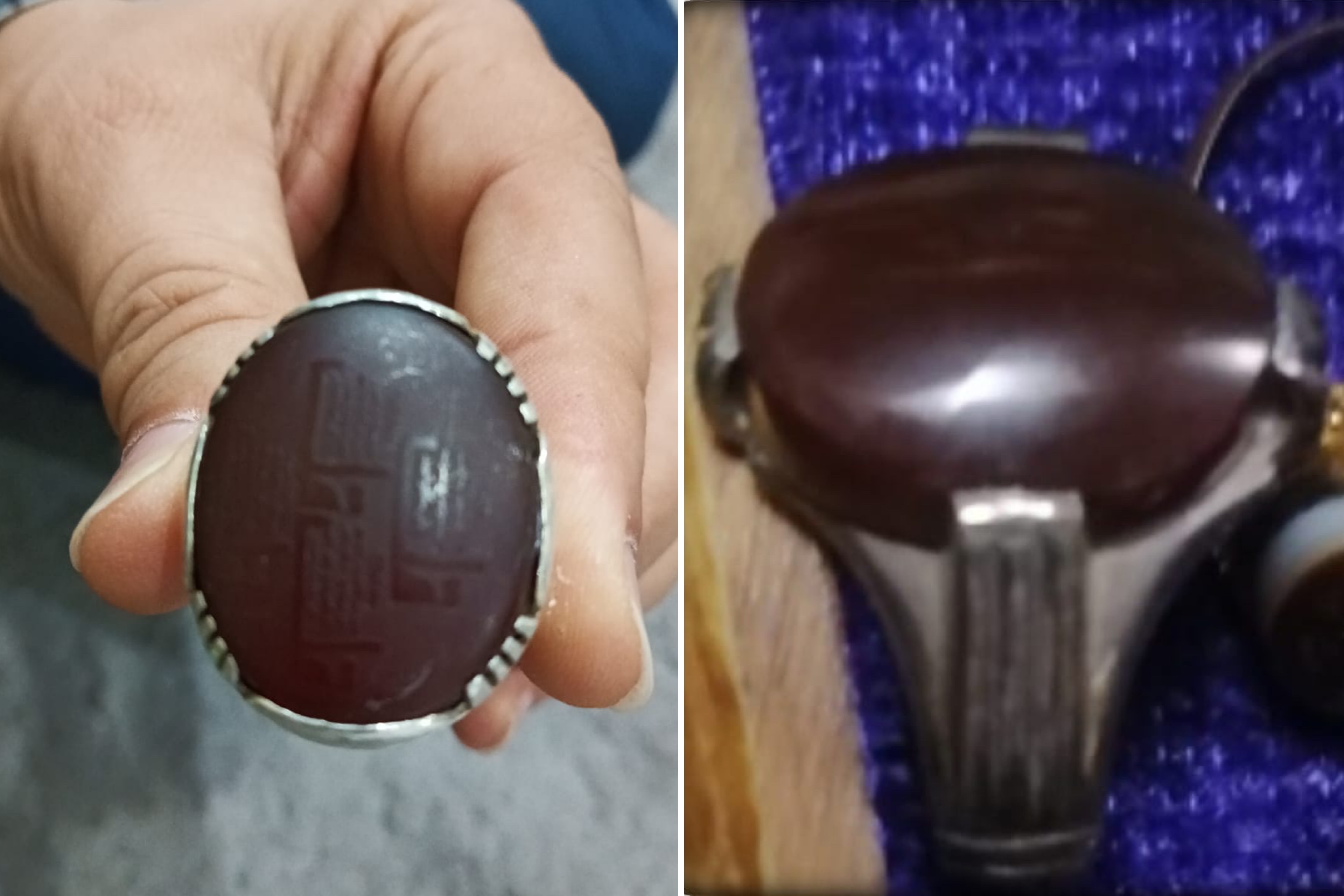 العقيق اليماني من أبرز الأحجار الكريمة المفضلة لدى أهالي منطقة القطيف، خاصة ذلك الذي يتميّز بلونه البني الكبدي العميق «تصوير: كاتب المقال».