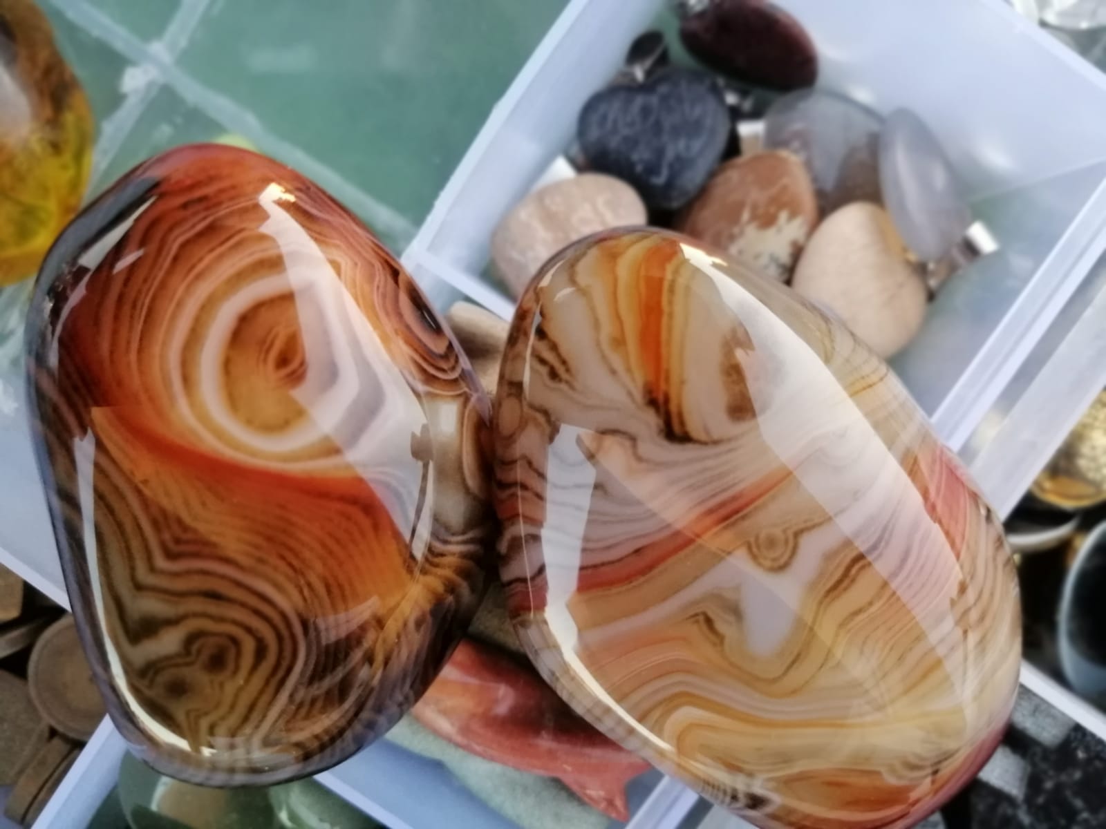 أحجار العقيق الطبقي، والبعض يطلق عليه اسم ”سليماني“ أو ”بقراني“ «تصوير: كاتب المقال»