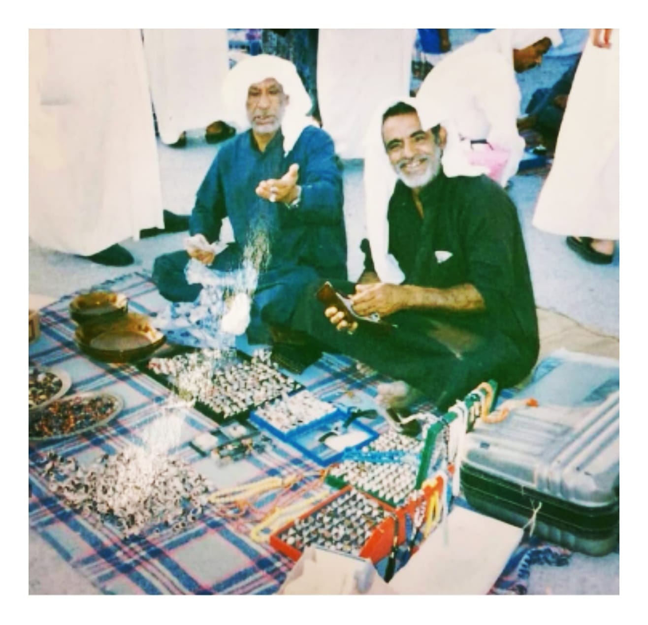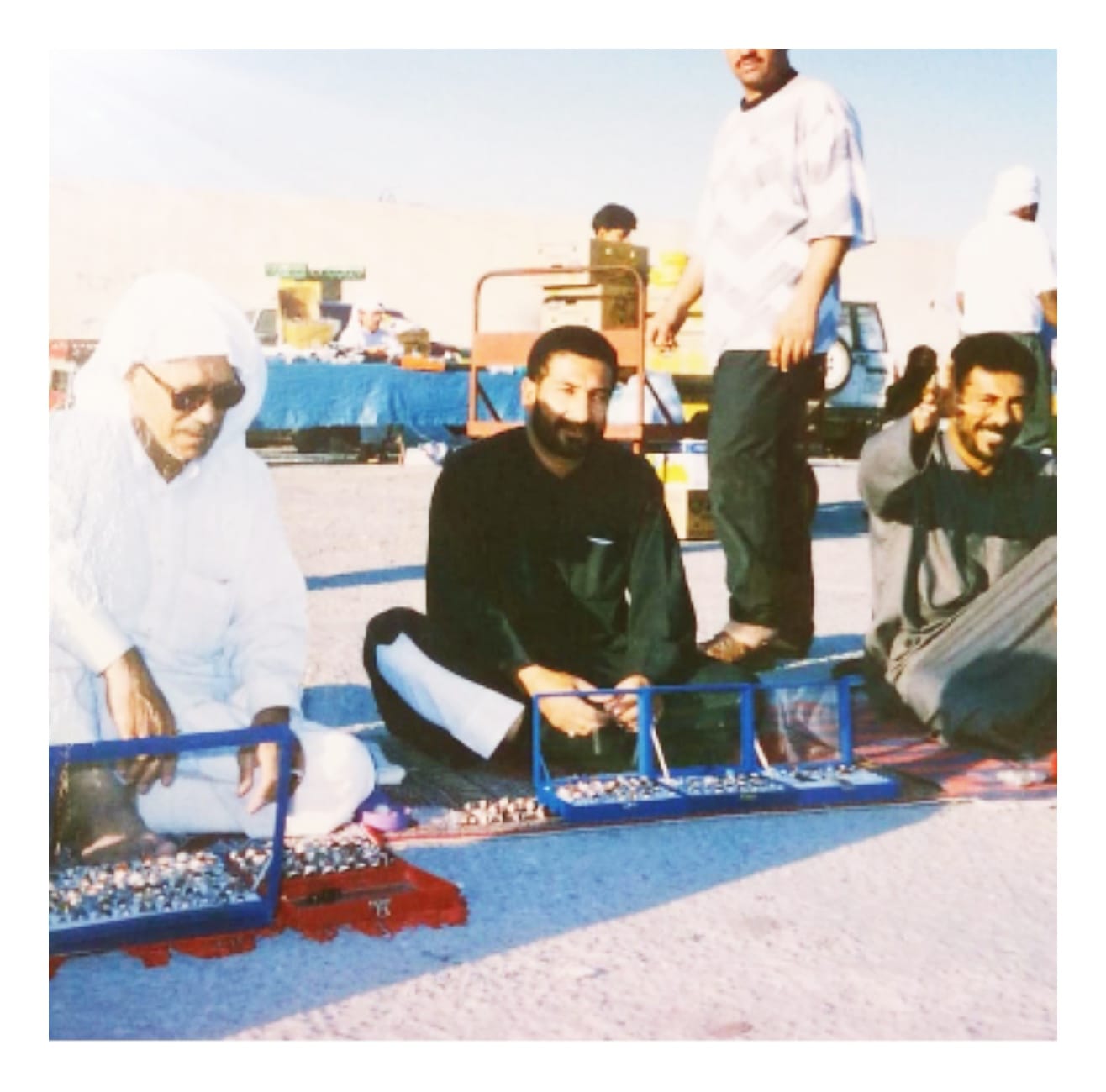 المرحوم الحاج أحمد آل مطر من أهالي بلدة العوامية، أحد أقدم باعة الأحجار الكريمة في محافظة القطيف، حيث واكب مختلف مراحل انتقال السوق، وشارك في عرض وبيع الأحجار الكريمة في جميع المواقع التي تواجد فيها السوق منذ بداياته «مصدر الصورة: مكي خليفة الشاخور».