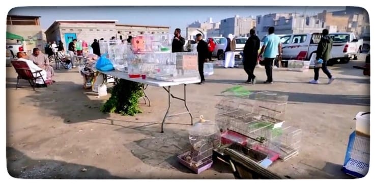 سوق الطيور الذي تباع في الأحجار الكريمة بجانبه