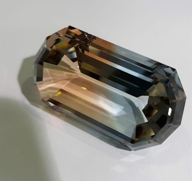 التوباز النفيس المكتشف حديثًا في جمهورية روسيا يُعد من أغلى وأندر الأحجار شبه الكريمة، ويمتاز بدرجاته اللونية المتعددة، وبريقه العالي وشفافيته الجذابة، يُقدّر هذا النوع لقيمته الجمالية وندرته «تصوير: كاتب المقال».