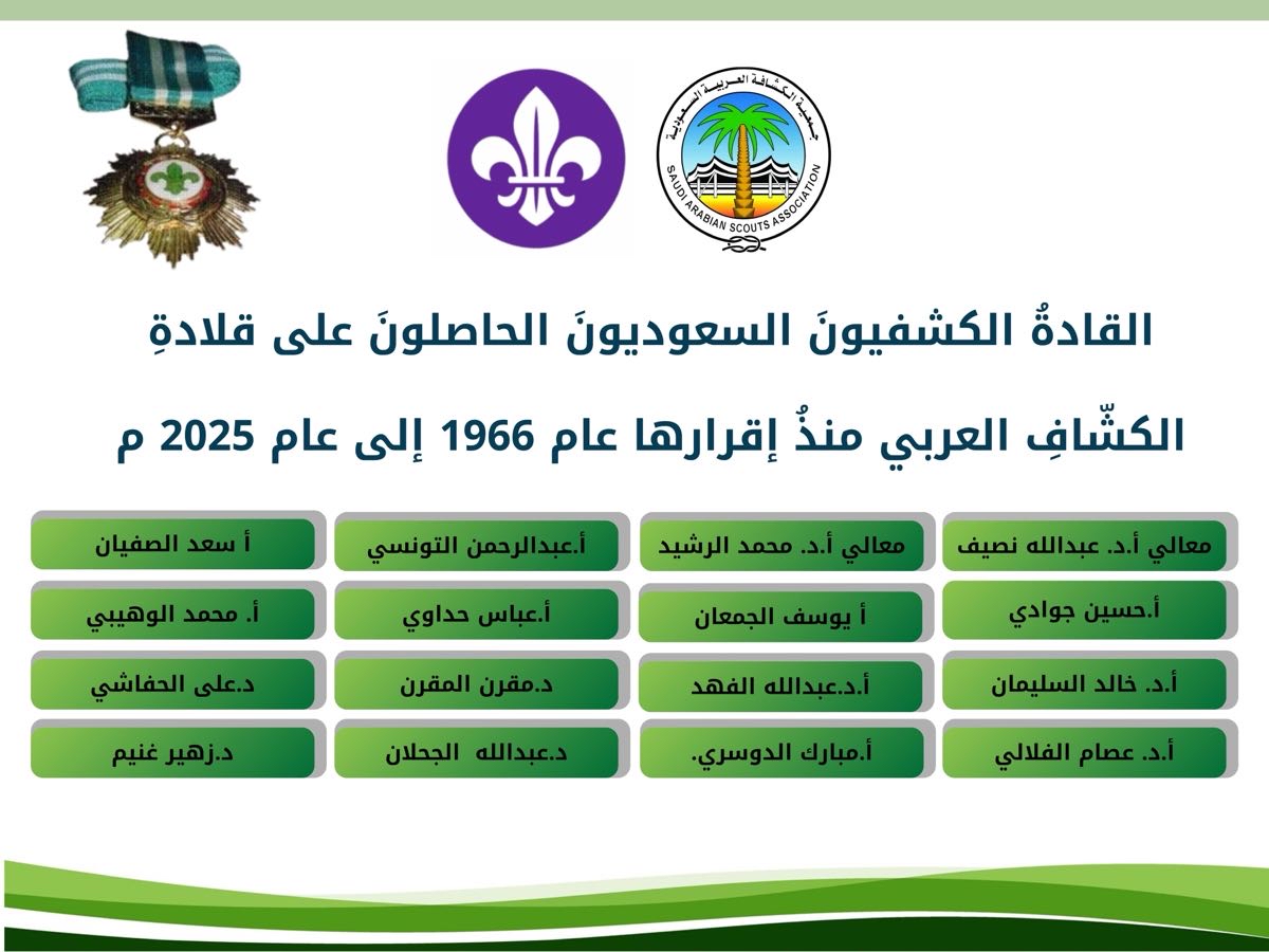 منذ عام 1966 م، تاريخ إقرار القلادة، وحتى اليوم، صعد ستة عشر قائداً سعودياً إلى منصة التتويج؛ ستة عشر اسماً حمل كل واحدٍ منهم جزءاً من تطور التجربة الكشفية في المملكة، وأثرى السجل العربي بإسهاماته؛ منهم من قدّم بحوثاً علمية غيّرت أساليب العمل الكشفي، ومنهم من ترك مؤلفات أصبحت مراجع، ومنهم من عمل بصمت في اللجان العربية، فصنعوا أثراً لا يُرى إلا عندما تُعلن أسماؤهم أمام الوفود العربية.