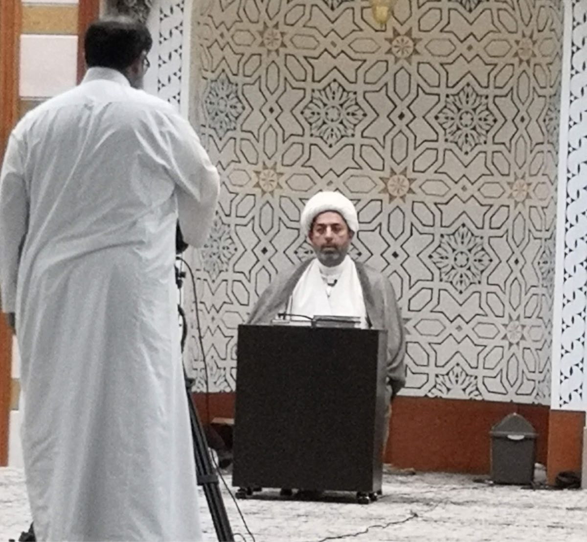 ، تتجسد حكاية عطاءٍ مستمرة، وبطلها فضيلة الشيخ الدكتور فيصل العوامي. هناك تشعر أن الوقت عنده ليس كغيره، بل يكاد ينحني أمام إرادته. فمنذ أكثر من خمسة وثلاثين عامًا، وهو يؤمّ المصلين، محوّلًا المسجد إلى واحة علم، وتشهد له تلك الجدران ومحراب المسجد.