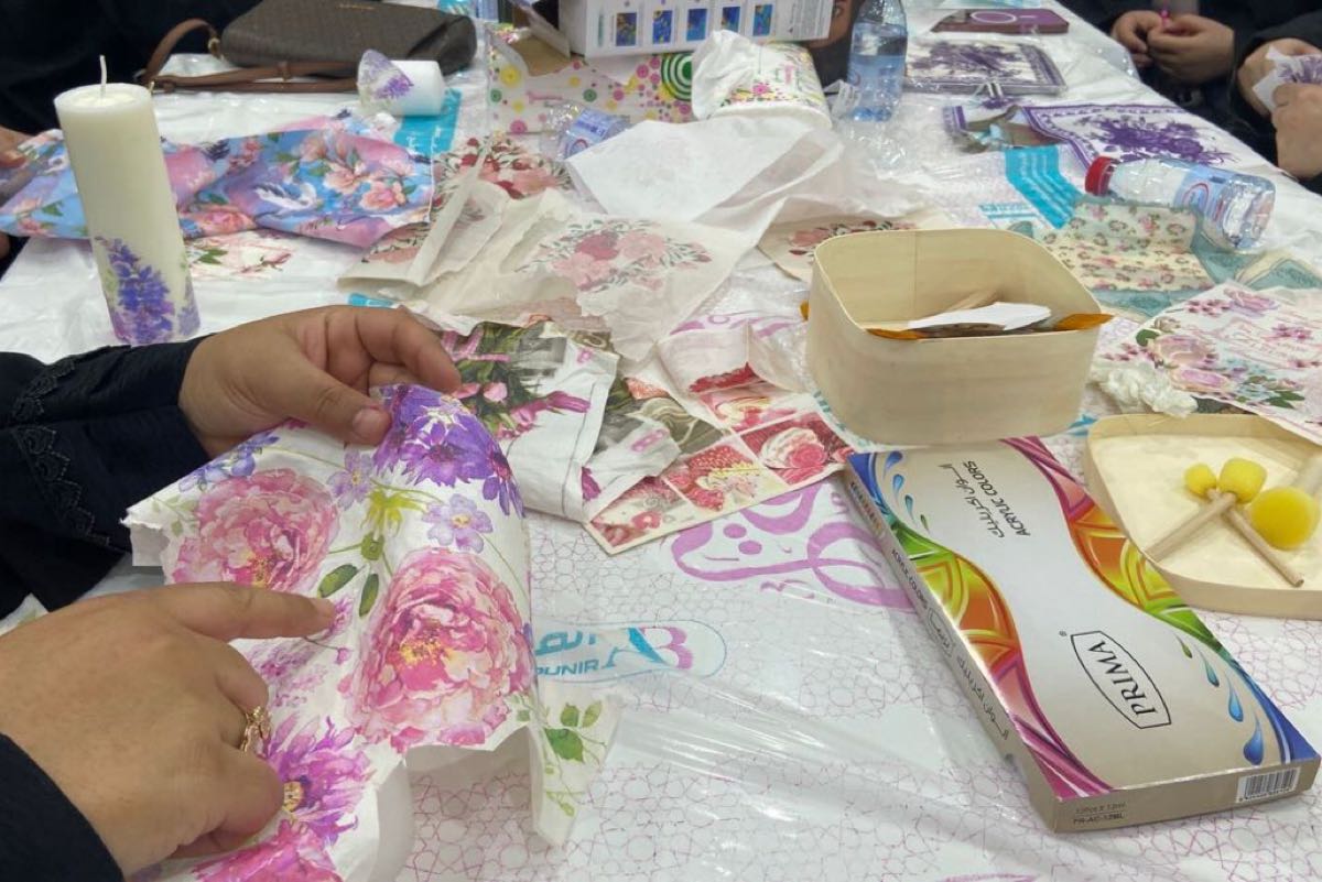 استضافت جمعية البر الخيرية بسنابس، بالشراكة مع وحدة الخدمات الاجتماعية بالقطيف، انزريب 20 سيدة من ذوات الإعاقة والمهتمات على مهارات «فن الديكوباج»، لتمكينهن مهنياً وإعادة تدوير الخامات القديمة إلى منتجات إبداعية.