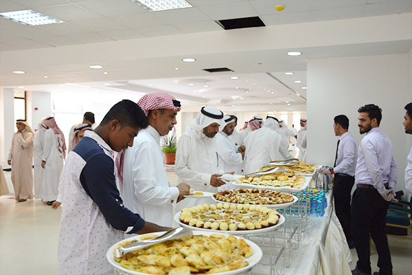 وعايد مجمع الدوائر الشرعية بالقطيف منسوبية بحضور رئيس المحكمة العامة بالقطيف الشيخ الدكتور محمد الفهيد ورئيس المحكمة الجزائية الشيخ بدر الجامع ورئيس كتابة عدل القطيف المساعد الشيخ صالح العمري وبحضور عدد من رؤساء الاقسام بالمحكمة.