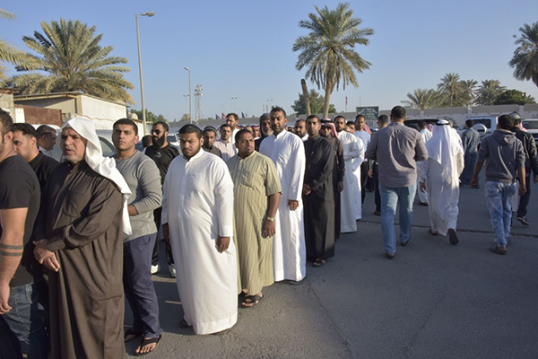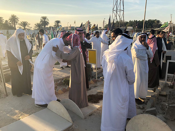 وتقاطرت وفود المشيعين الى مقبرة تاروت منذ الساعة الثانية والنصف تقريبا، حيث اكتظت الطرقات المؤدية الى المقبرة بمئات السيارات لمسافة طويلة، فيما احتشد المئات خارج المقبرة بانتظار انطلاق التشييع الرسمي.