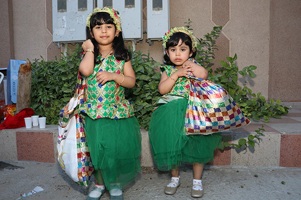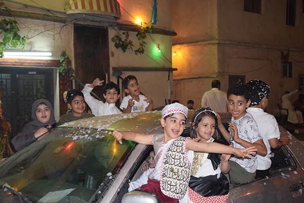 الأطفال الذين رددوا اهازيج شعبية خاصة بالمناسبة حرص الكثير منهم على ارتداء الملابس التراثية فيما حرصت العوائل على توزيع الحلوى عند أبواب منازلهم.