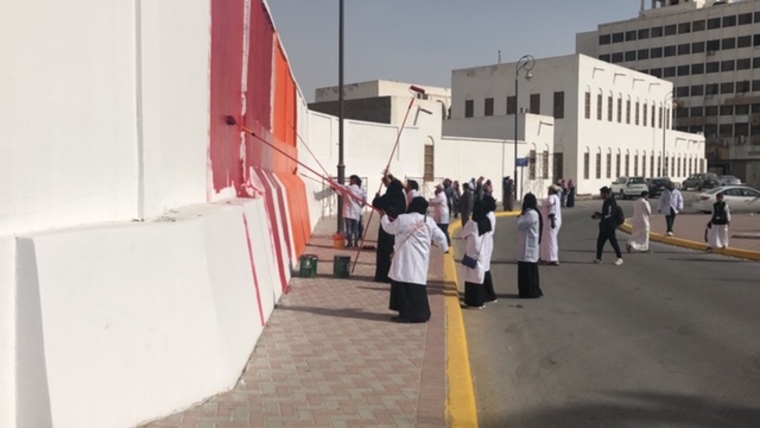 وأوضحت مشرفة الفنون التشكيلية بجمعية الثقافة والفنون بالأحساء لا سلمى الشيخ بأن هذا العمل الفني التطوعي بإشراف جمعية الثقافة والفنون بالأحساء ويشارك فيه أكثر من 50 فنان وفنانة من الفنانين التشكيليين الأحسائيين.