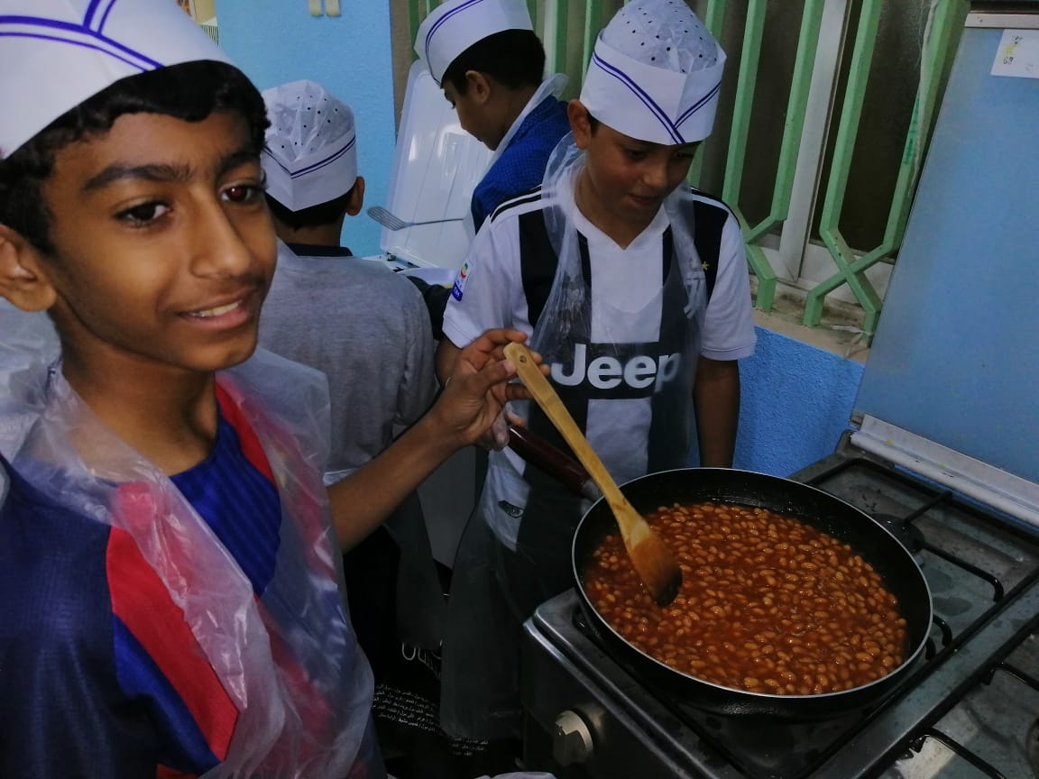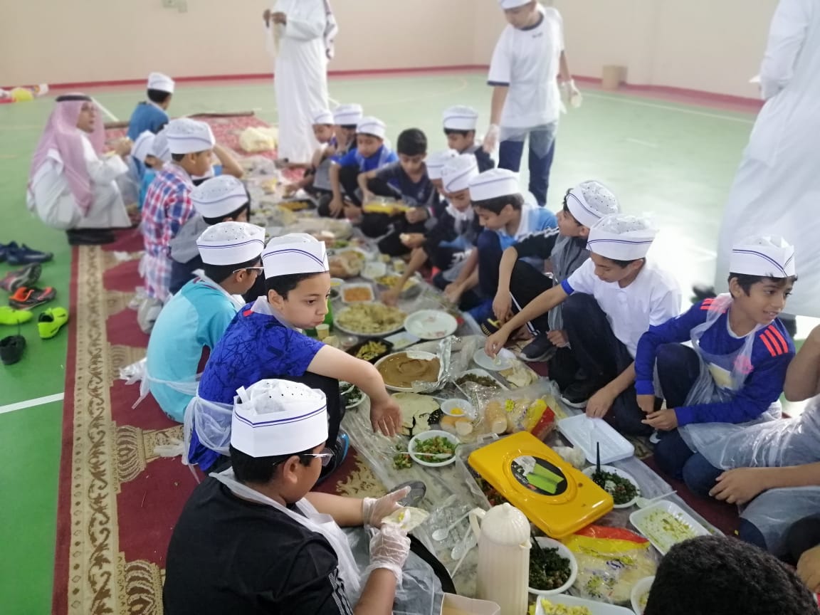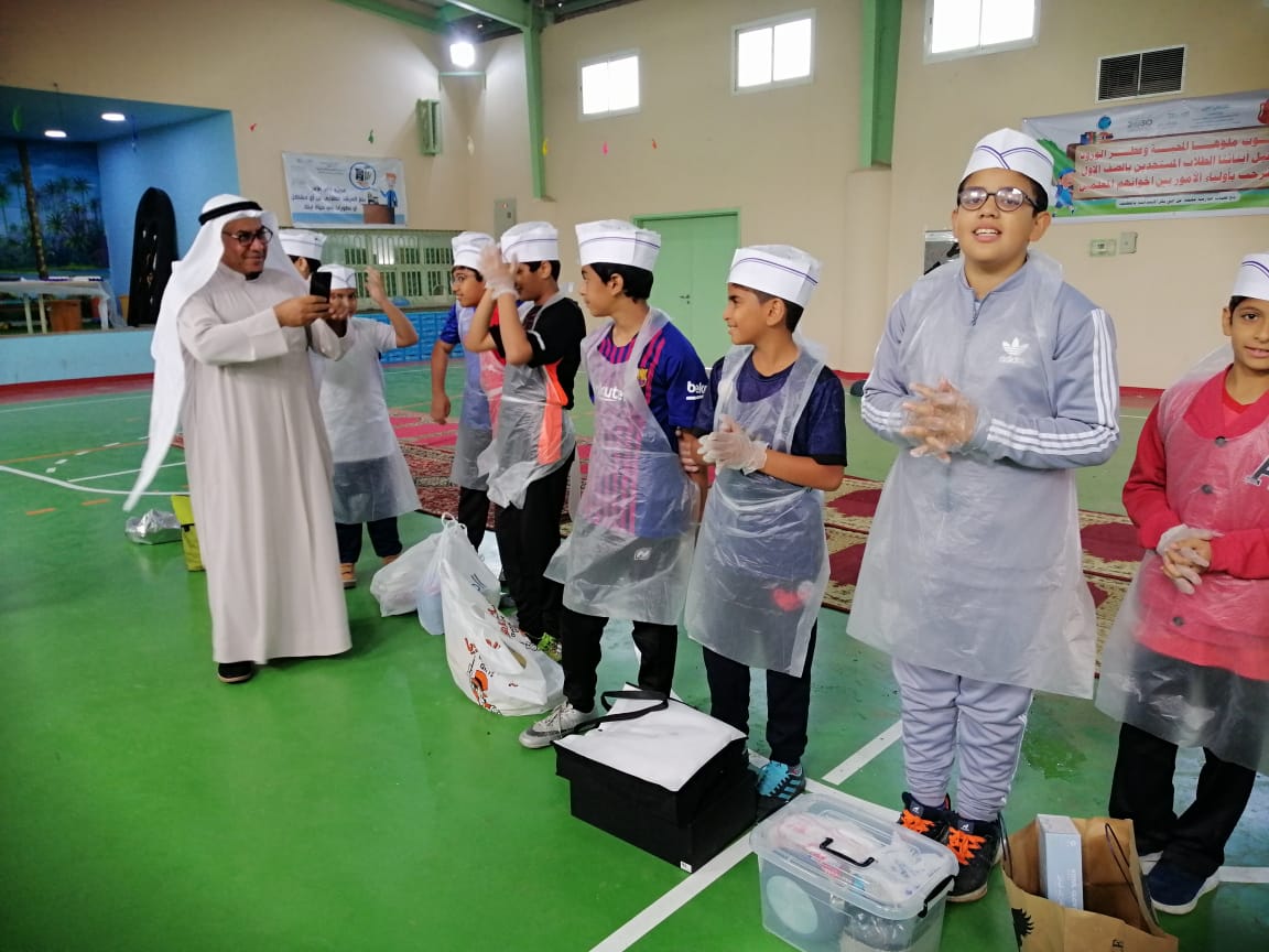 بادر طلاب من الصف السادس بمدرسة محمد بن أبي بكر الابتدائية بالقطيف بإعداد وجبة الإفطار في المدرسة من صنع أيديهم.