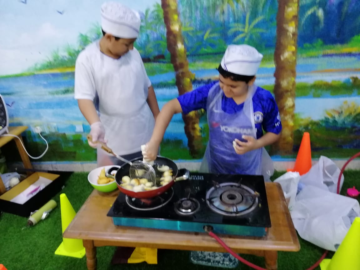 وصنع الطلاب العديد من الإطباق المتنوعة، لتظهر قدرتهم وفنياتهم في الطبخ ومنها القيمات والعصيدة والكبدة، والدجاج وأطباق البيض وغيرها.