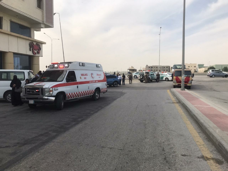 وأضافت بأنه تم تقديم الخدمة الإسعافية لهم وإسعافهم إلى مستشفى الملك فهد الجامعي.