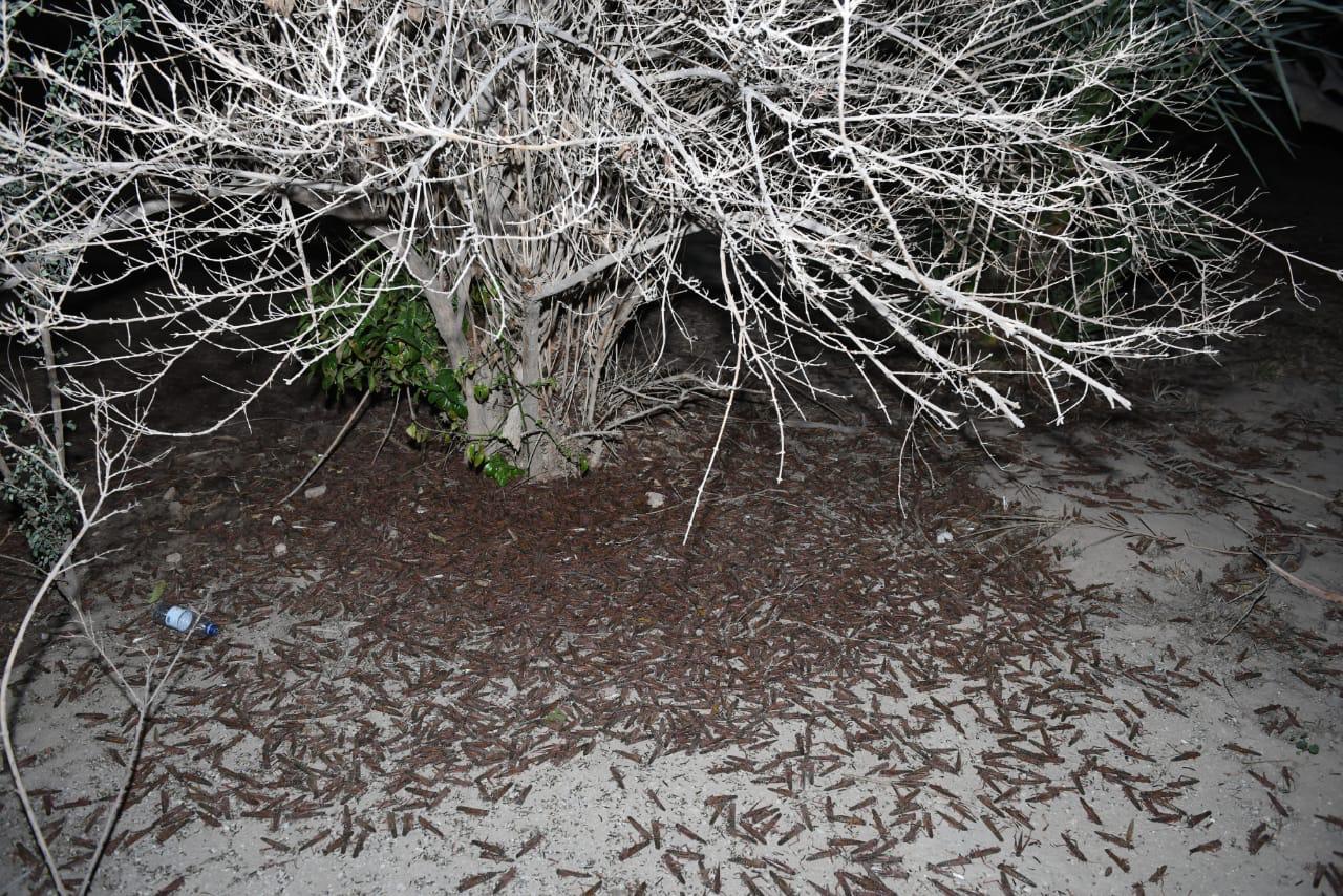 قامت فرق الرصد والمكافحة بمكتب البيئة والمياه والزراعة بأعمال تتبع أسراب الجراد منذ صباح الثلاثاء مع وصول أسراب الجراد إلى محافظة الاحساء.