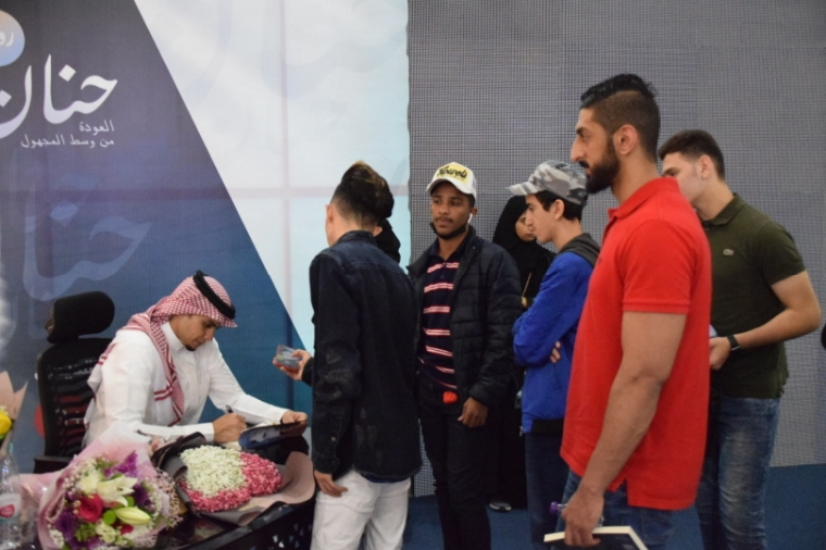وعن رواية حنان التي وقعها في مجمع الظهران مول قال ”حنان تهجر سمير وتختفي تماماً من حياته ويبدأ سمير رحلة البحث عن نفسه أولاً وعن حنان“.
