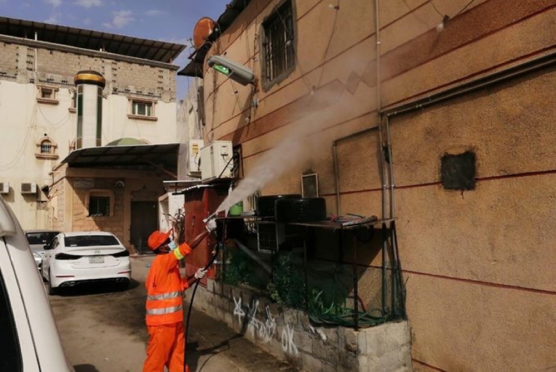 وقال م. الحسيني إن البلدية تعمل بالتعاون مع وزارة الزراعة والمياه والبيئة على تعقيم الشوارع والساحات العاملة.