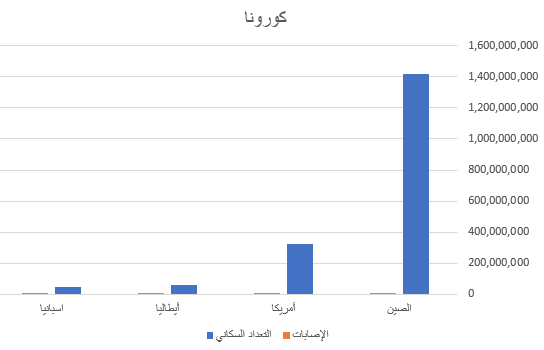 لو عدنا مجددا للمراكز الأربعة السابقة وأعدنا ترتيبها أخذين في الحسبان التعداد السكاني محتسبين عدد الإصابات لكل مليون شخص فسنجد أن الترتيب سيتغير حيث ستحل إسبانيا في المركز الأول بمعدل 1895 إصابة/مليون، تليها إيطاليا بمعدل 1716 إصابة/مليون، تليها أمريكا بمعدل 500 إصابة/مليون ثم الصين بمعدل 57 إصابة/مليون وبهذا فإن الترتيب الفعلي لن يصمد حيث ستتراجع أمريكا لتسبقها دول أوروبية أخرى كألمانيا مثلا 812 إصابة/مليون، حتى الصين لن تكون في المركز الأخير فنحن في السعودية أقل منها بمعدل 43 إصابة/مليون ناهيك عن دول لم يصل إليها كورونا حتى الآن.