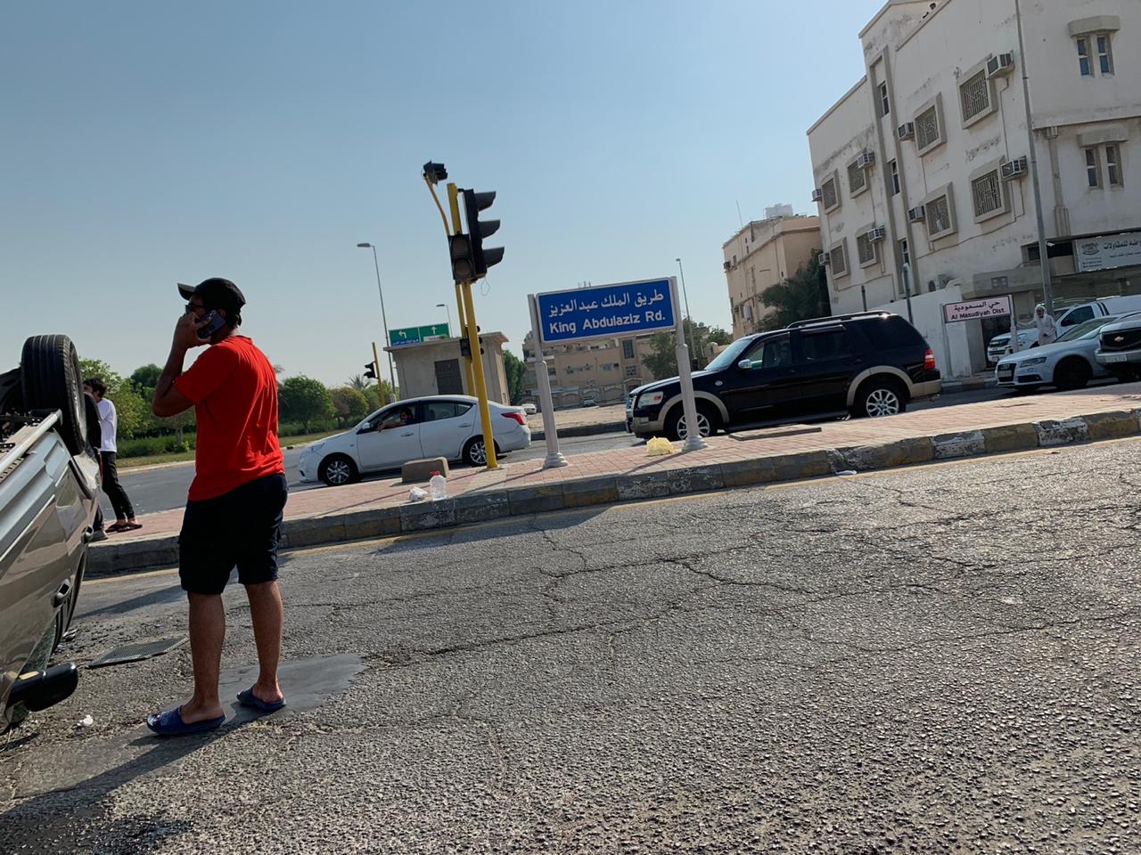 بالصور.. انقلاب سيارة في حادث مرّوع وسط مدينة القطيف