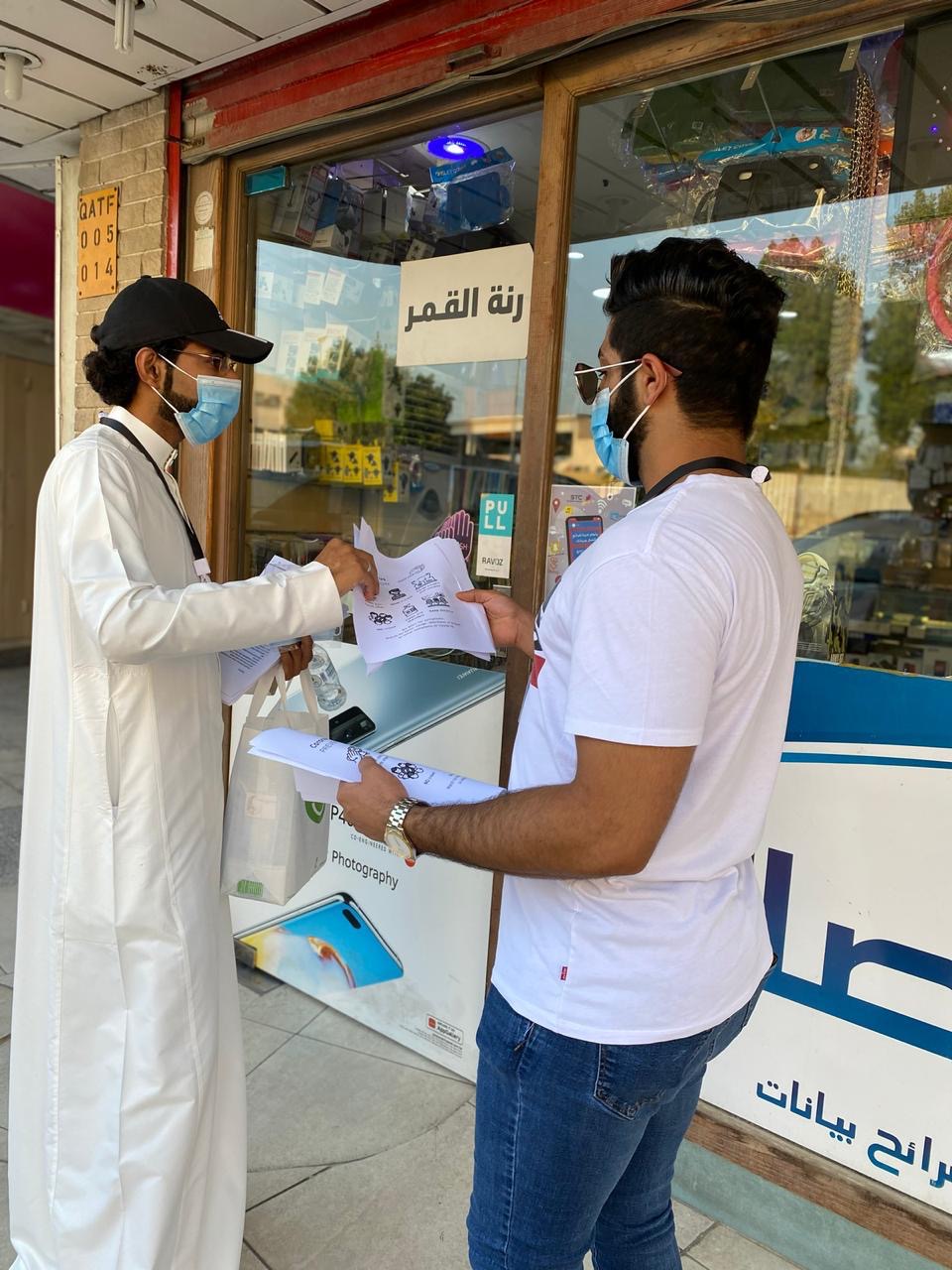 وقام فريق متطوعي الوحدة بتوزيع الكمامات ومنشورات التوعية والتباعد الصحي على المقيمين من جنسيات مختلفة، حيث تم توزيع 300 مطوية توعوية بلغات متعددة.