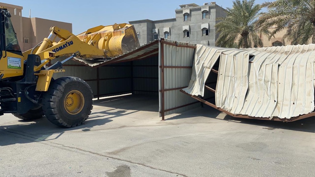 بالصور.. إزالة مظلات السيارات المخالفة بالقطيف