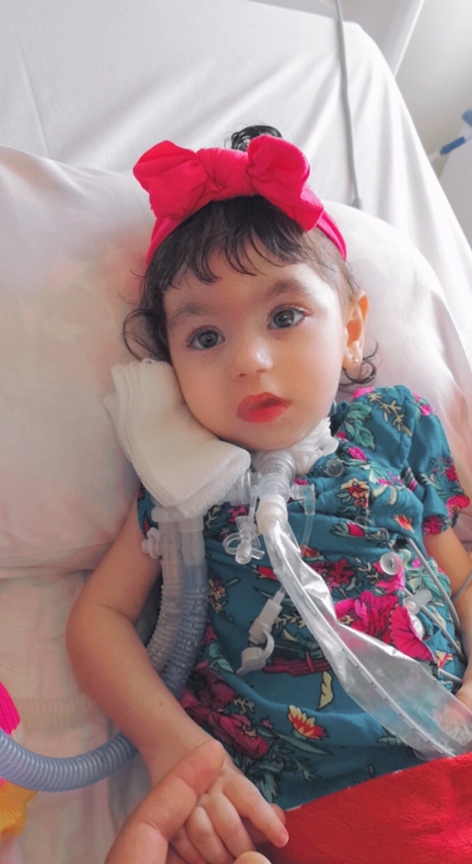 الطفلة ”كيان“ التي تتنفس من خلال الأنبوب ترقد منذ خمسة شهور في مستشفى جاما بالدمام وكانت قبلها في مستشفى القطيف المركزي لخمسة شهور أخرى.