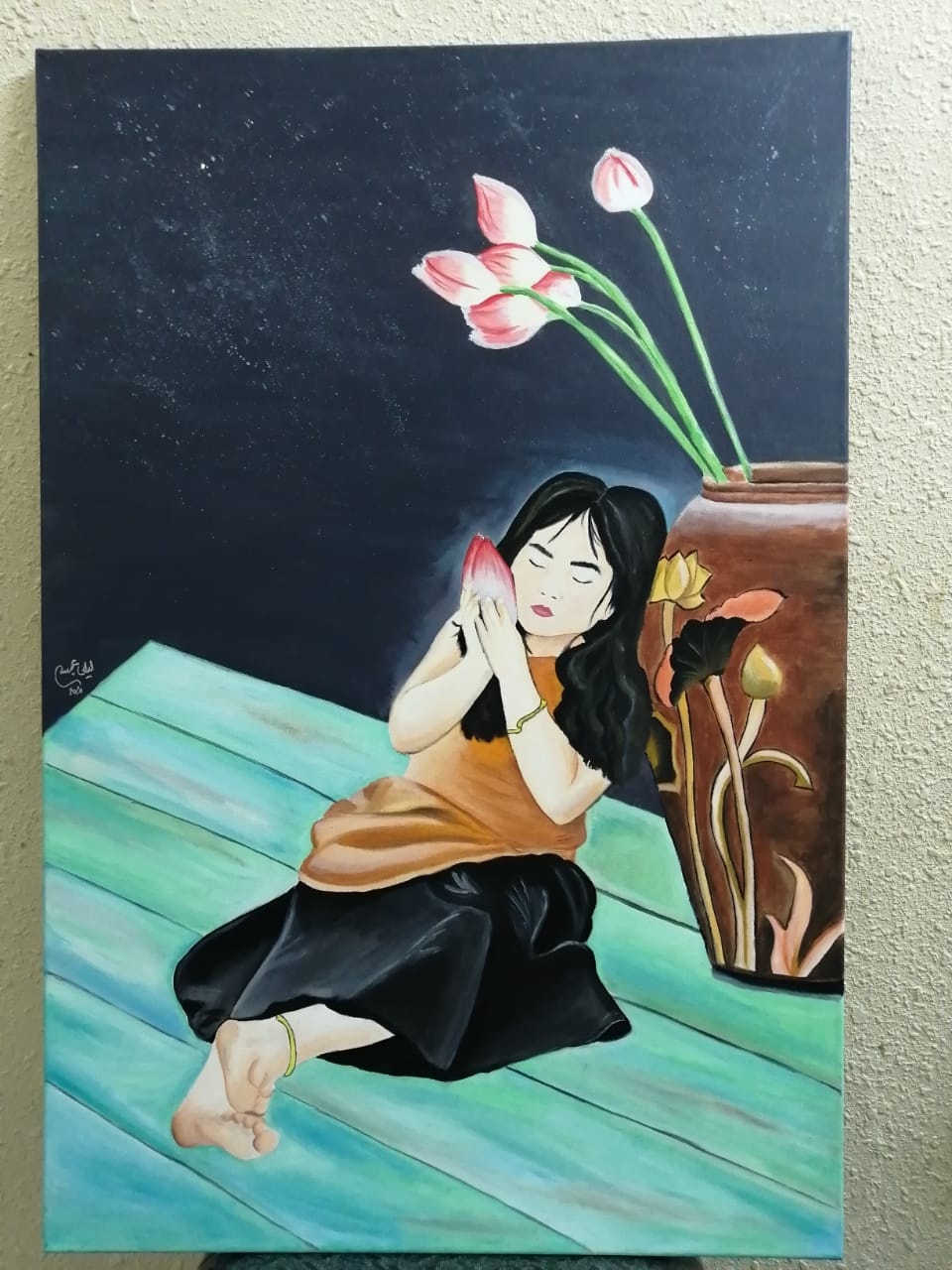 وأشار إلى أنها شاركت بأعمالها في المعارض الفنية 3 مرات، مضيفةً أن والدها هو الذي حفزها للرسم، وأعطاها الملاحظات، لتكون أفضل.