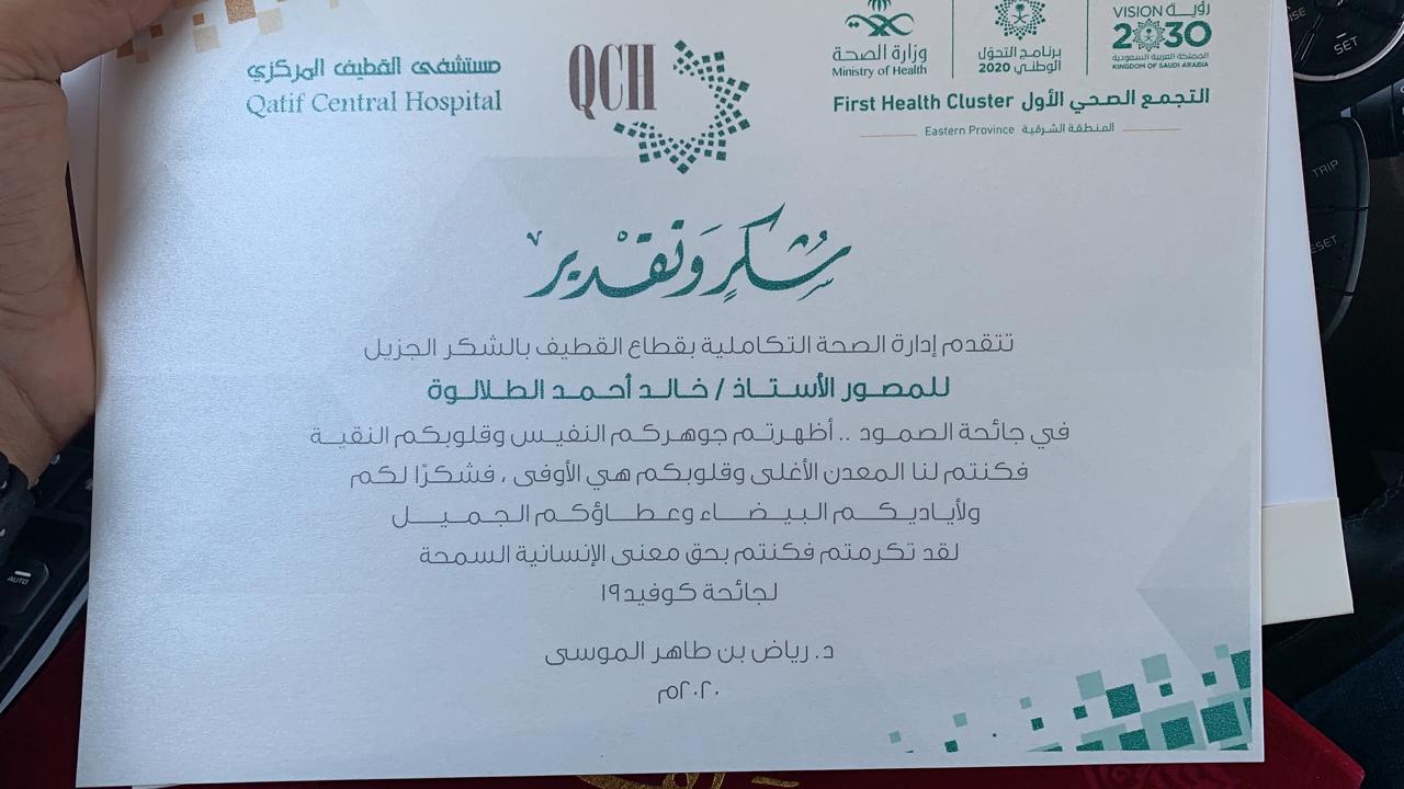 كرمت رئيسة الرعاية الصحية النموذجية بقطاع القطيف الدكتورةلمياء عبد الوهاب بو حليقه 12 شخصية من مبدعي وإعلاميي ومصوري المنطقة نظير تعاونهم خلال جائحة كورونا.