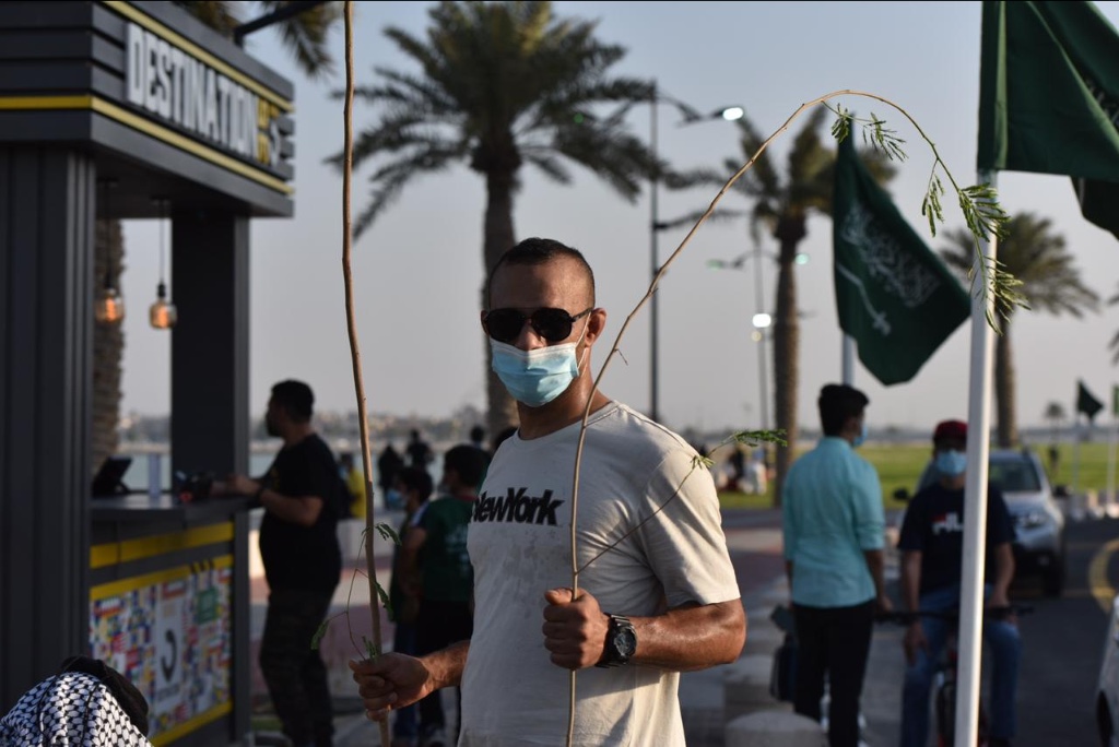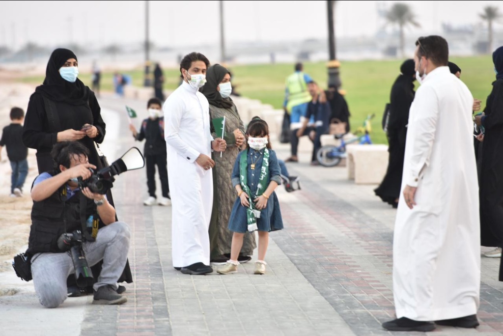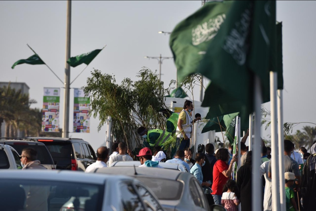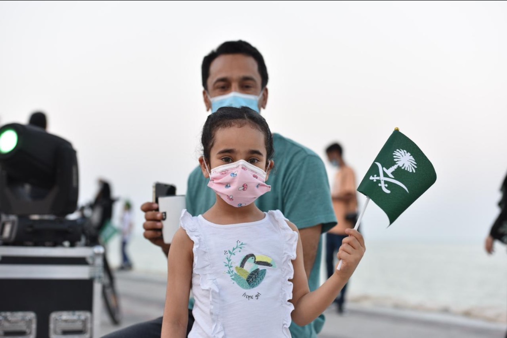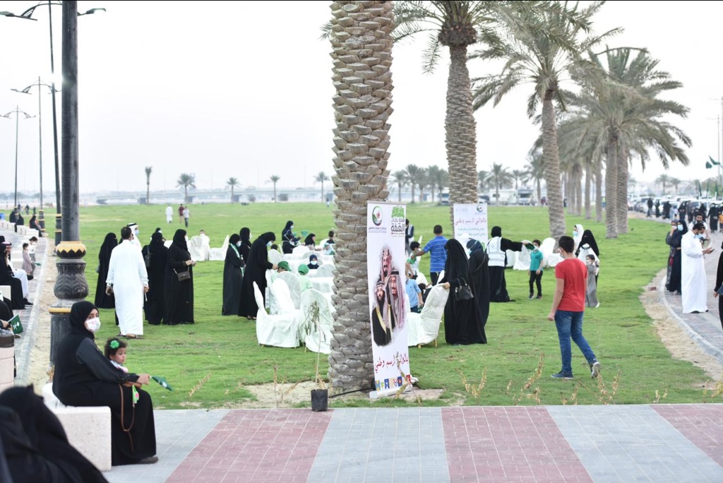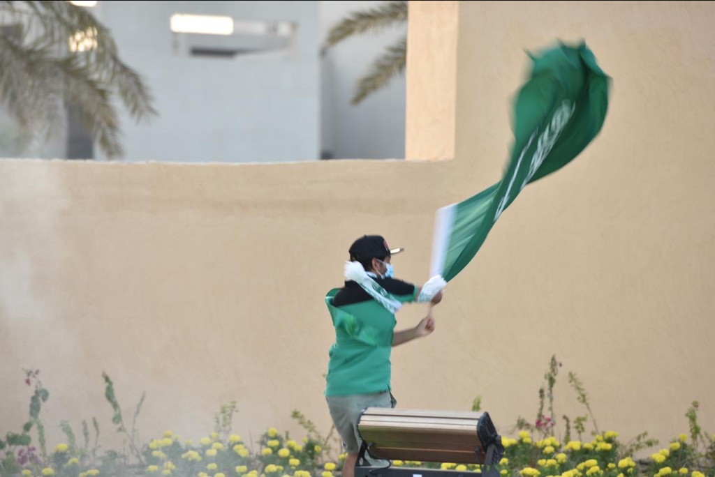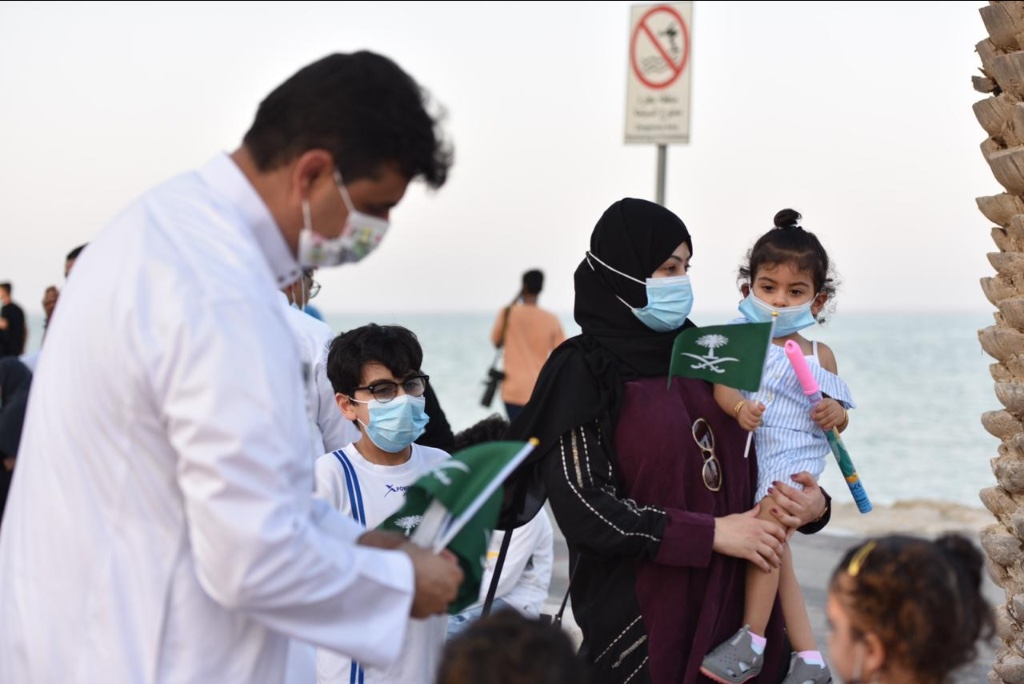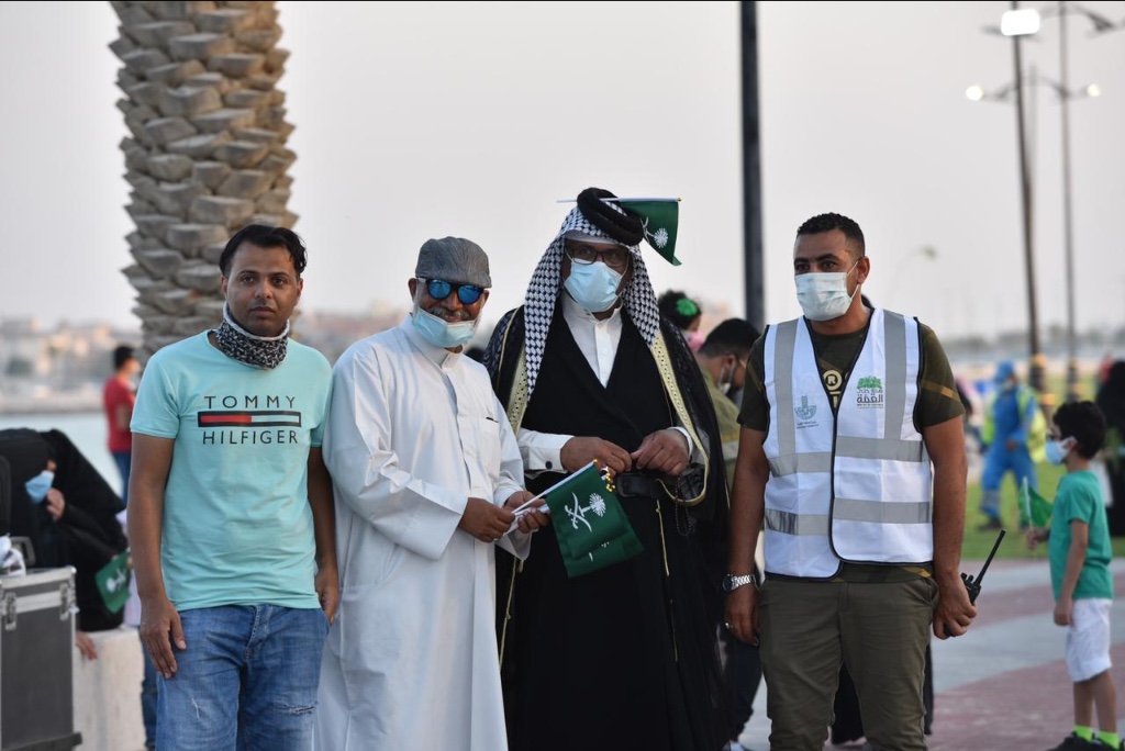 سيطر اللون الأخضر على الأجواء الاحتفالية التي نظمتها بلدية محافظة القطيف، اليوم الأربعاء، بمناسبة اليوم الوطني 90 بالواجهة البحرية بحي الشبيلي، وسط تنظيم عالي، والالتزام بالاحترازات الصحية لمواجهة "كورونا"، حيث تم توزيع 15 ألف علم.