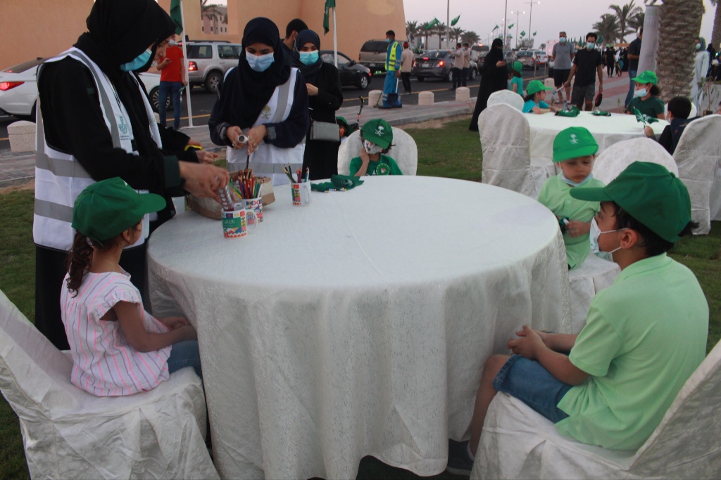 جاء ذلك في الواجهة البحرية بحي الزهراء ”الشبيلي“، في إطار الاحتفال باليوم الوطني 90 للمملكة، تحت شعار "همة حتى القمة.