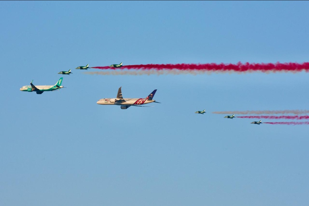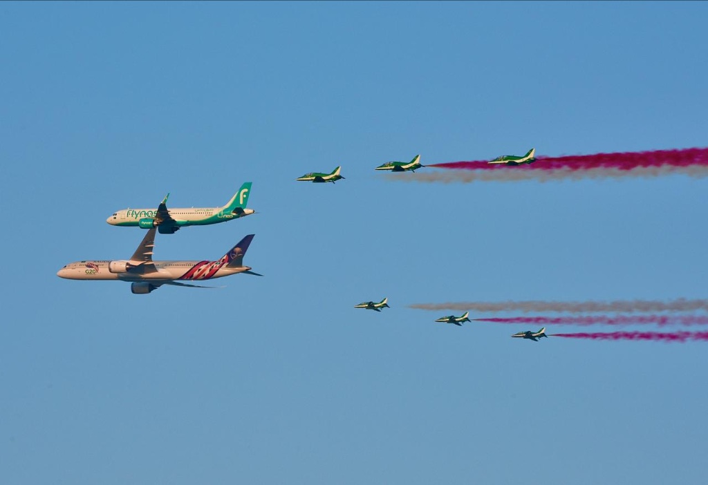 وشارك في العروض القوات الجوية الملكية السعودية، وفريق الصقور السعودية، وطائرة «بوينج 777» للخطوط الجوية العربية السعودية.