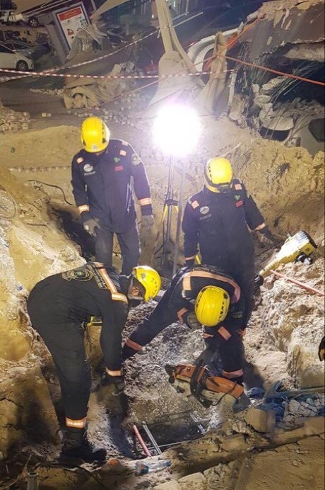 وقبل يومين، باشرت فرق الدفاع المدني بالخبر حادث انهيار جزئي لسقف مواقف أرضية بمجمع السعيد التجاري، وتم إنقاذ شخصين محتجزين، وما زالت أعمال البحث تحت الأنقاض مستمرة حتى الآن.