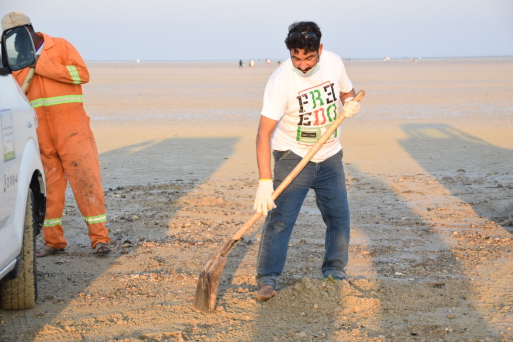 وتهدف الحملة التي شارك فيها أكثر من 830 متطوع ومتطوعة إلى إيصال رسالة توعوية لرواد شاطئ الرملة البيضاء في جزيرة تاروت بأهمية المحافظة وترسيخ مفهوم وأهمية المحافظة على المنتزهات والأماكن العامة.
