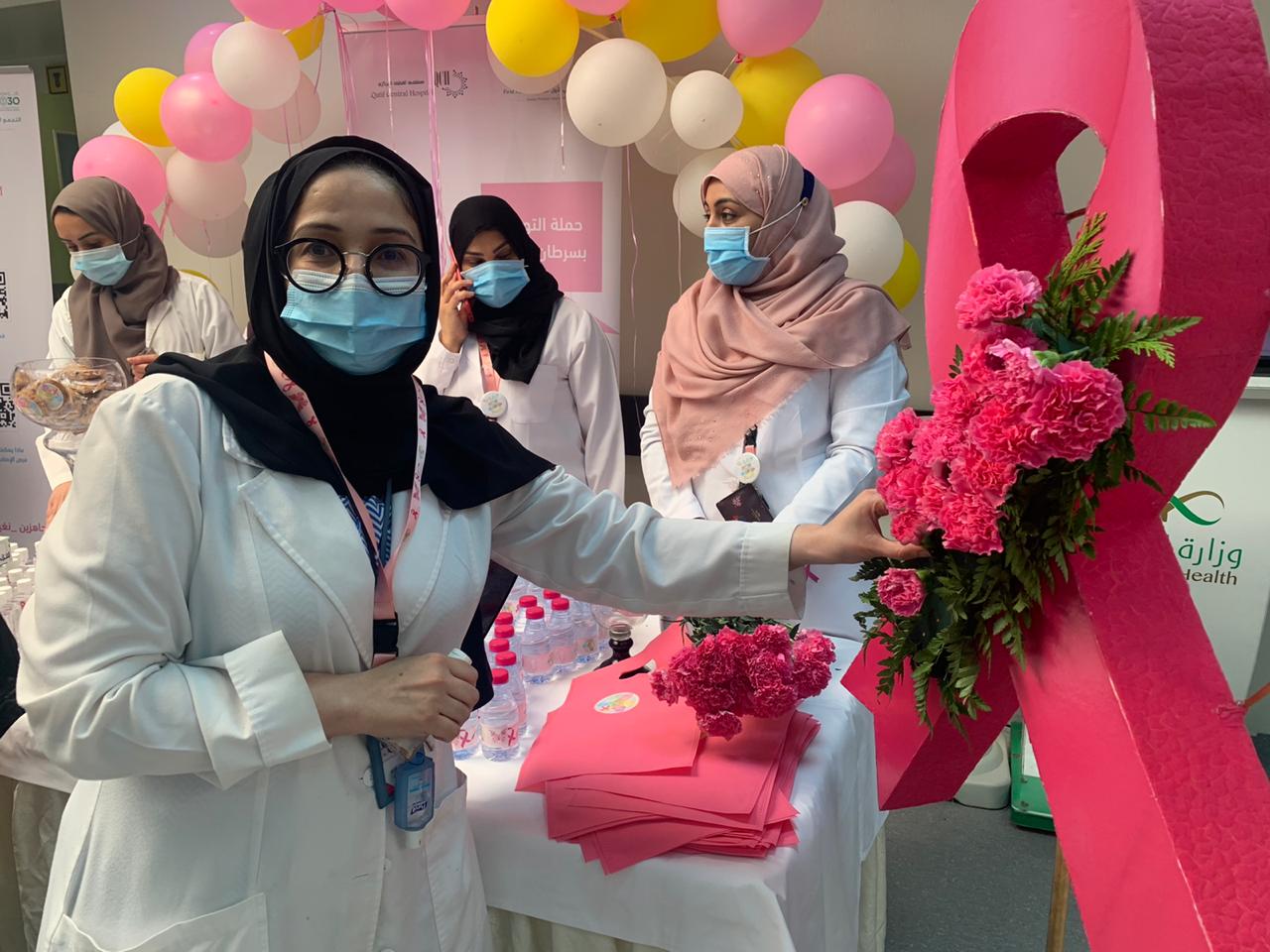 الجدير بالذكر أن الحملة تأتي في إطار احتفالات شهر أكتوبر الوردي وهو الشهر العالمي للتوعية بأمراض سرطان الثدي ضمن استراتيجيات المستشفى في تعزيز الجانب الوقائي وغرس الثقافة الصحية لدى أفراد المجتمع كافة للتوعية بمرض سرطان الثدي.