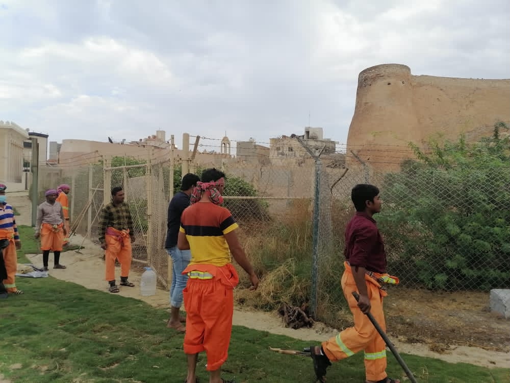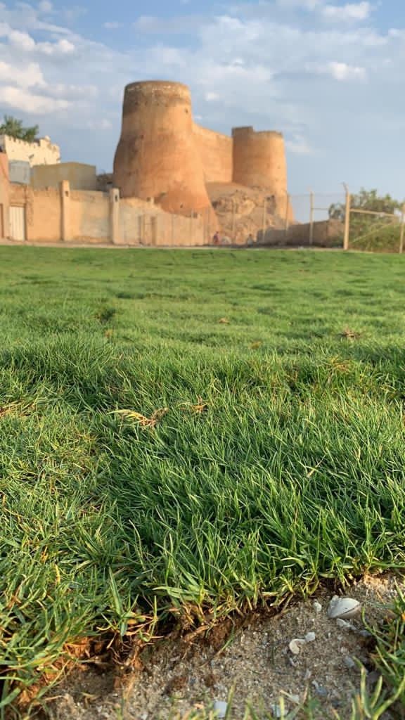 بعد إنارتها.. تزيين محيط قلعة تاروت بالمسطحات الخضراء