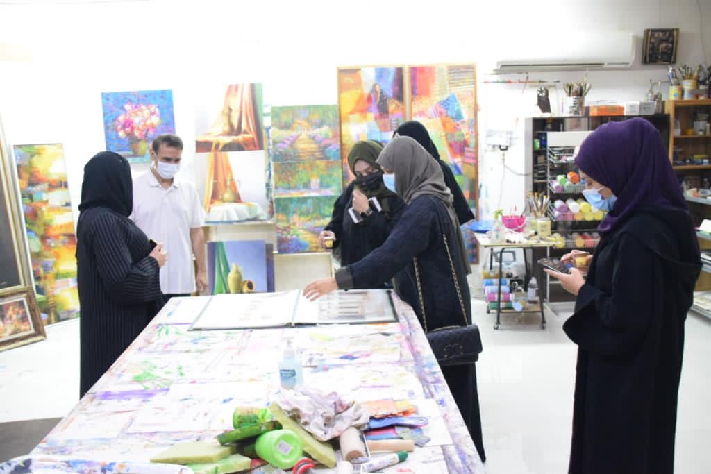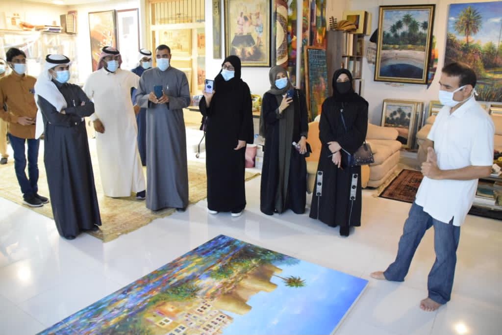 تضمنت الزيارة عرض أعمال متنوعة من مختلف السنوات، حيث يعد الحجي من المبدعين في مجال الرسم.