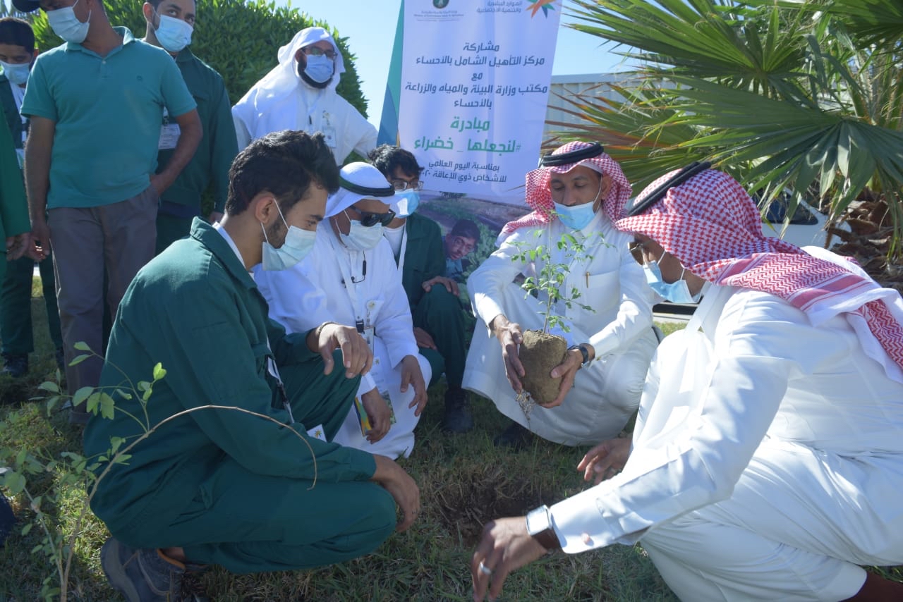 دشن فرع وزارة البيئة والمياه والزراعة بالمنطقة الشرقية ممثلاً في مكتب الوزارة بمحافظة الأحساء، مبادرة ”تشجير“، بمقر مركز التأهيل الشامل بالأحساء، وذلك تزامنًا مع اليوم العالمي لذوي الإعاقة 2020.