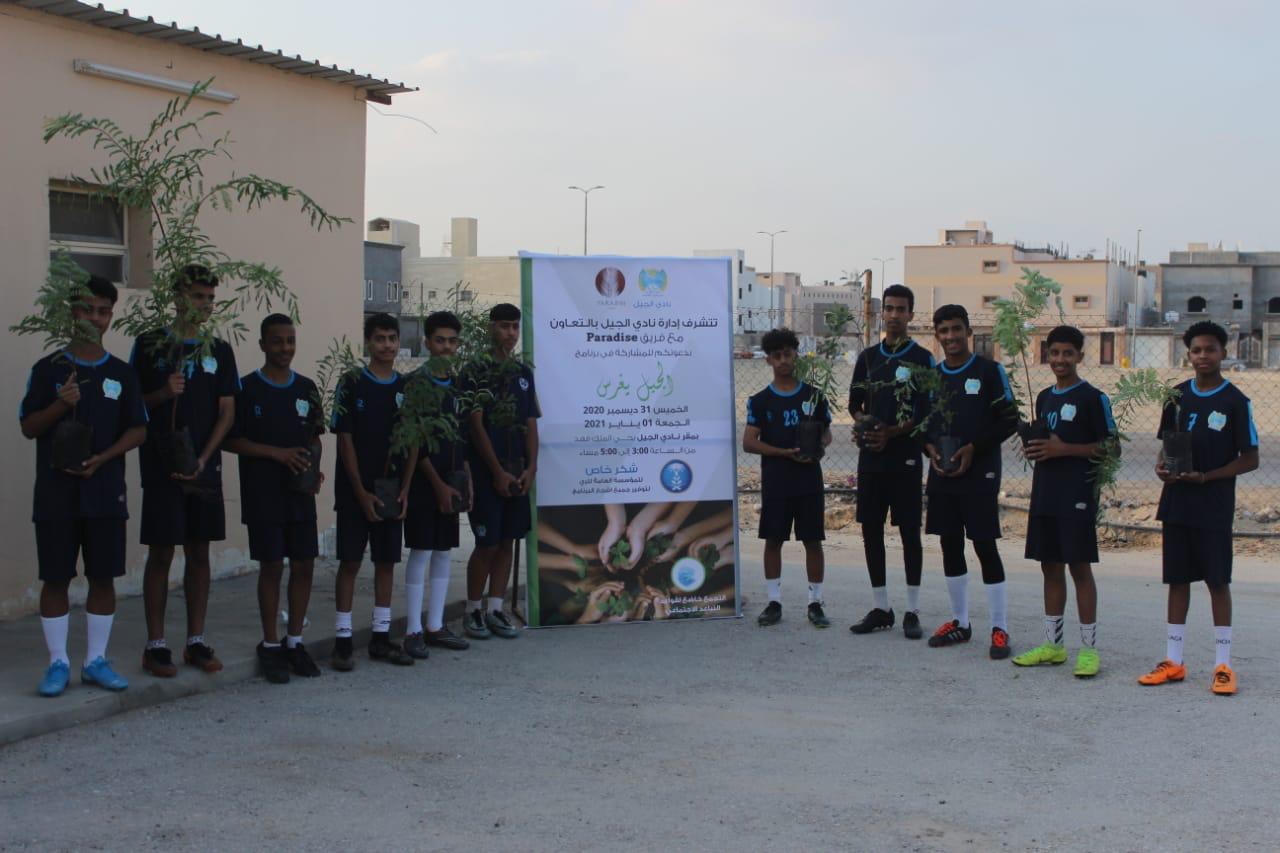 تحت عنوان ”الجيل يغرس“، نظمت لجنة المسؤولية الاجتماعية بنادي ”الجيل“، برنامجًا بيئيًا توعويًا، بالتعاون مع فريق برادايز التطوعي، وبمشاركة ودعم من المؤسسة العامة للري.