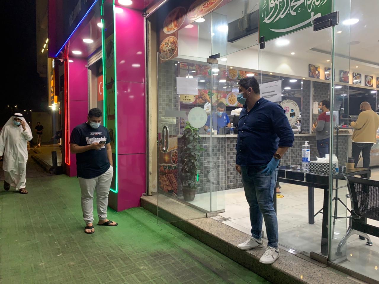 خامسا: تعليق تقديم خدمات الطلبات الداخلية في المطاعم والمقاهي وما في حكمها والاقتصار على تقديم الطلبات الخارجية وذلك لمدة «10» أيام قابلة للتمديد، مع عدم السماح لأي تجمهر ينتج عن تلك الطلبات الخارجية، وأن تقوم وزارة الشؤون البلدية والقروية والإسكان بإغلاق المنشأة المخالفة لذلك لمدة «24» ساعة، وفي حال تكرار المخالفة للمرة الأولى يكون الإغلاق لمدة «48» ساعة، ولمدة «أسبوع» في حال تكرارها للمرة الثانية، ولمدة «أسبوعين» للمرة الثالثة، وفي حال تكرار المخالفة للمرة الرابعة وأكثر، يكون إغلاق المنشأة لمدة «شهر»، مع عدم الإخلال بتطبيق أي عقوبة أخرى مقررة في شأن تلك المخالفات.