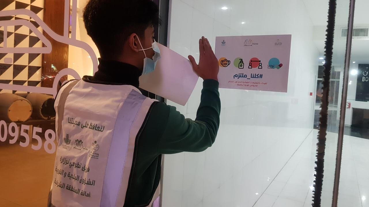شارك أكثر من 100 متطوع ومتطوعة في الجولات الرقابية الميدانية التي تنفذها أمانة الشرقية للحد من انتشار فيروس ”كورونا“، ونشر ثقافة الوعي في المجتمع للالتزام بالإجراءات الاحترازية والتدابير الصحية وذلك عبر توزيع المنشورات والمطويات تتحدث عن هذا الجانب الرقابي وكذلك التعاون مع مراقبي البلديات في الإبلاغ عن المخالفات في كافة المجمعات والأسواق.