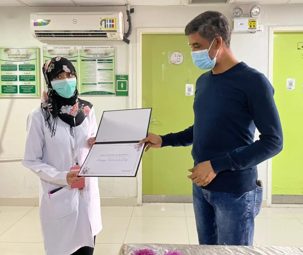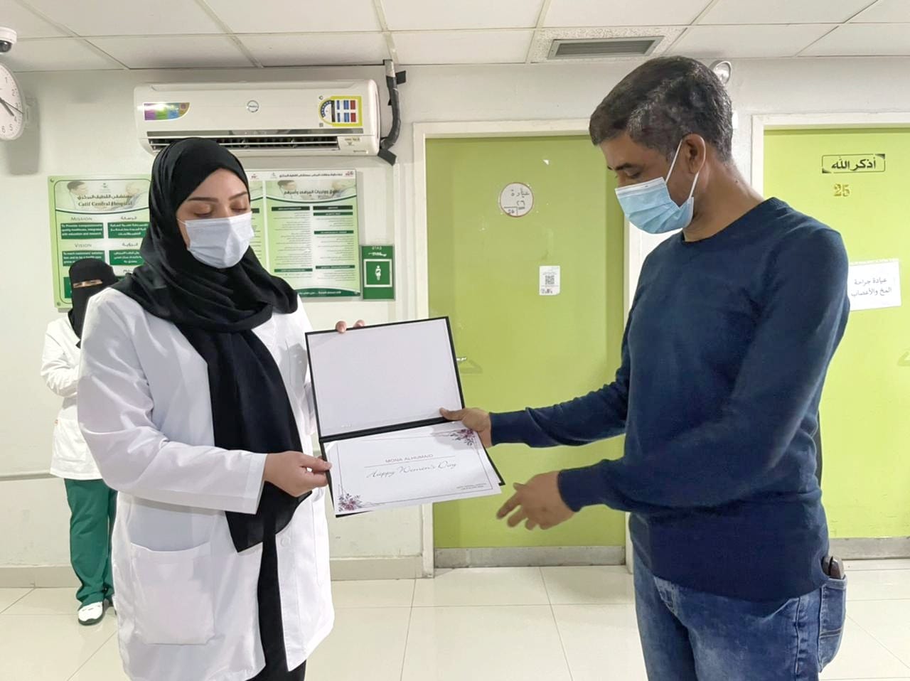 وذكرت فني سحب الدم خديجة المحمد علي أنه تم الاحتفاء بيوم المرأة العالمي في العيادات الخارجية، لإسعاد السيدات واعطائهن قوة وقيادية في المجتمع.