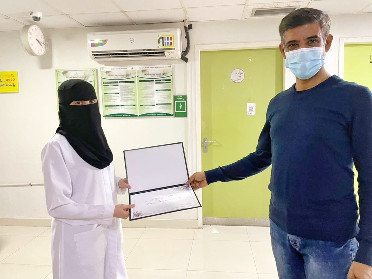 وكرم المستشفى عدد من منسوباته وهن: منى الحميد ومريم المتروك وخديجة المحمد علي وهداية العسيف وهناء الشقاق وهنادي اليوسف وزينب الحميد وإسراء الشريط وخاتون المطيلق.