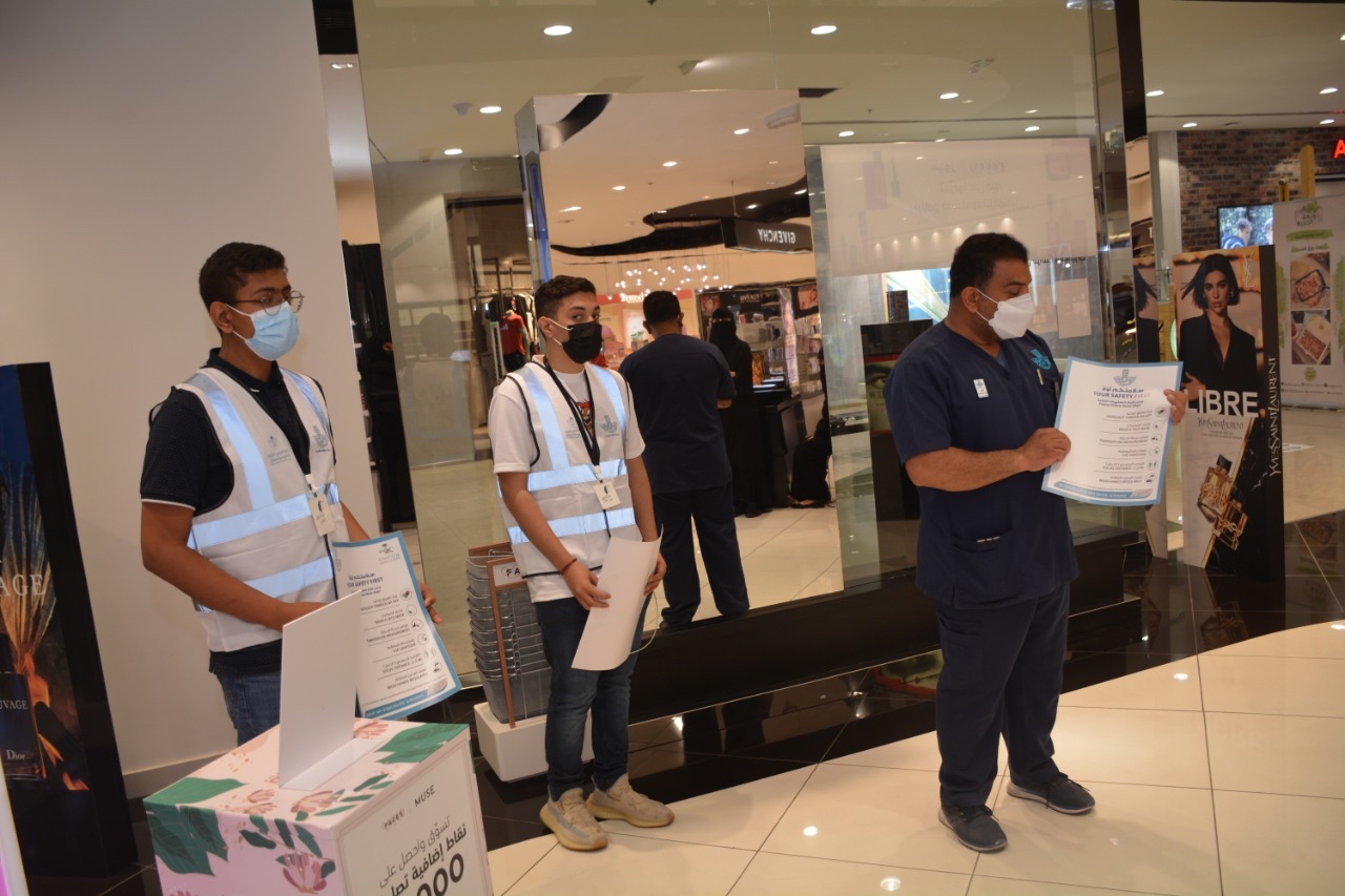 وقال ان المبادرة ساهم فيها 300 متطوع ومتطوعة، ومشاركة 54 مراقب/ة صحي تم توزيعهم داخل المجمعات التجارية والمنشآت الغذائية والأسواق العامة ومراكز التسوق للإسهام، بدورهم في الجهود للحد من انتشار الفيروس من خلال توعية المتسوقين بالإجراءات الاحترازية والمساهمة في تنظيم التباعد الجسدي والتأكيد على تعقيم الأيدي وتفعيل تطبيق «توكلنا».