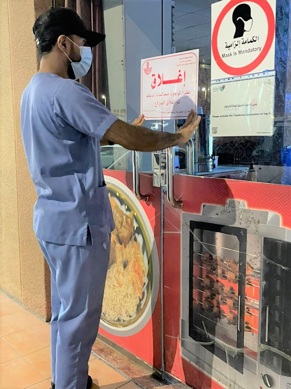 وتواصل الأمانة جولاتها الرقابية المكثّفة، للتأكد من تطبيق كافة المنشآت التجارية للإجراءات الاحترازية والتدابير الوقائية، وتطبيق ”توكلنا“؛ في والأسواق، والمراكز، ومتابعتها، وذلك لحماية المجتمع من انتشار فيروس كورونا، وكذلك متابعة تطبيق كافة الاشتراطات البلدية.
