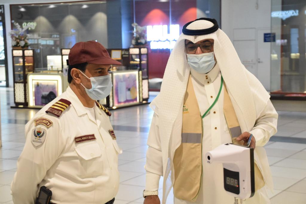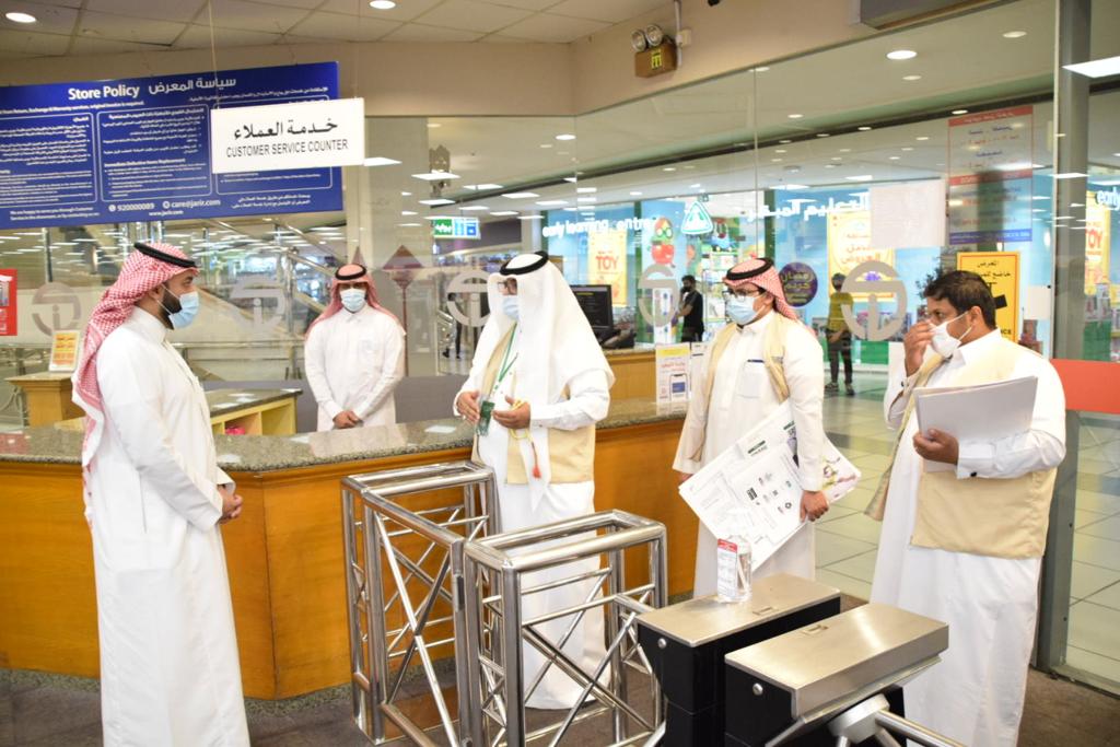 وقامت الفرق بتوعية زوار المجمعا التجارية بضرورة لبس الكمام والتباعد الجسدي وتعقيم اليدين, واستخدام تطبيق توكلنا.