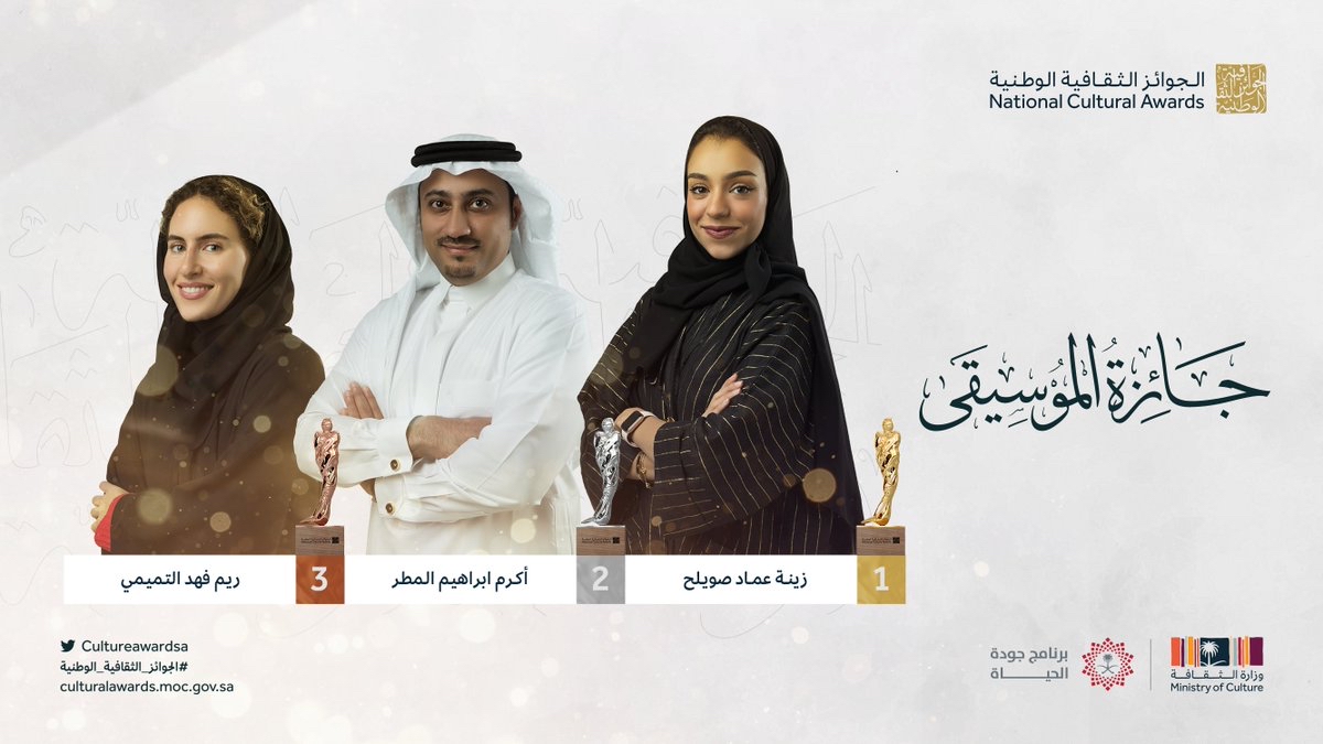 حصدت زينة عماد صويلح من محافظة القطيف على المركز الأول في جائزة الموسيقى المقدمة من وزارة الثقافة وهي إحدى جوائز مبادرة ”الجوائز الثقافية الوطنية“.