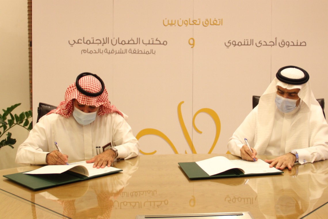 وقع أمين عام جمعية البر بالمنطقة الشرقية نائب رئيس مجلس الجمعيات بالمنطقة الشرقية والمشرف العام على صندوق القروض التنموية ”أجدى“ سمير العفيصان، اتفاقية تعاون مشترك بين الصندوق، والمكتب الرئيس للضمان الاجتماعي بالمنطقة الشرقية ممثلا في المدير العام للمكتب سعيد القحطاني.